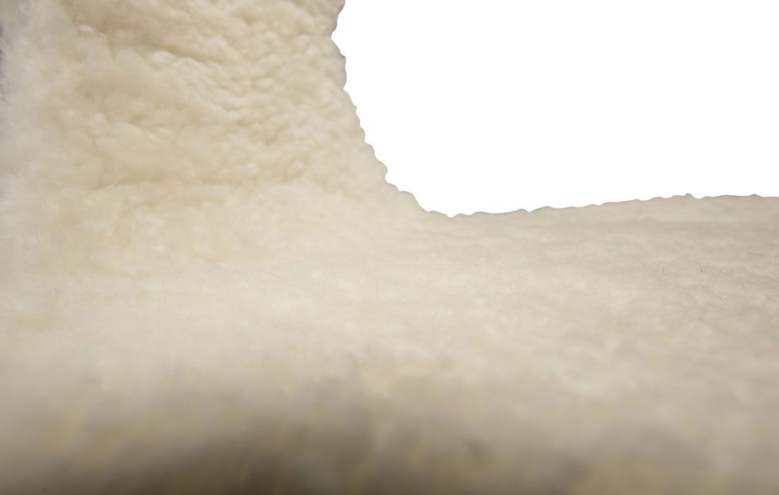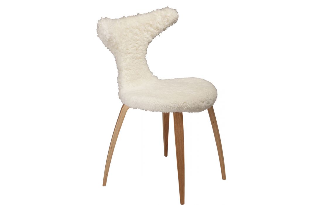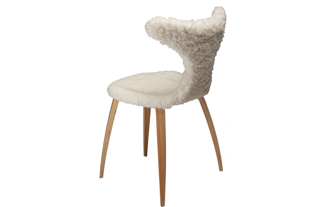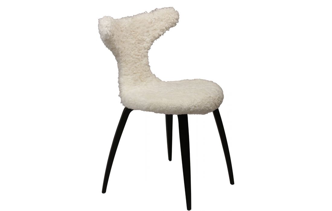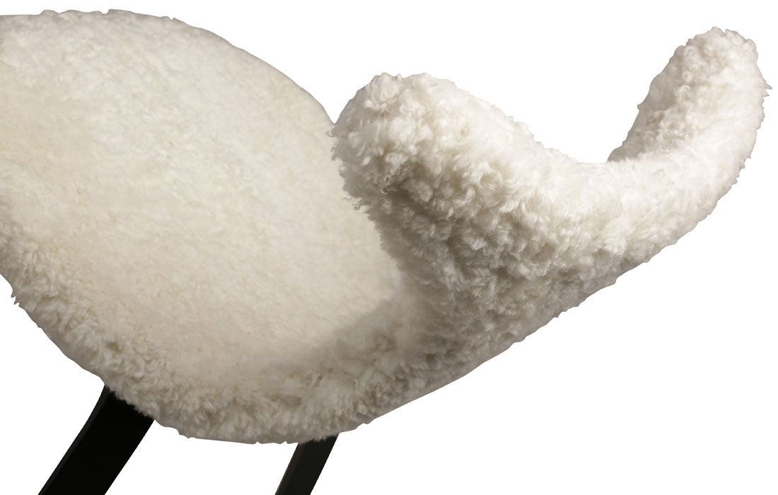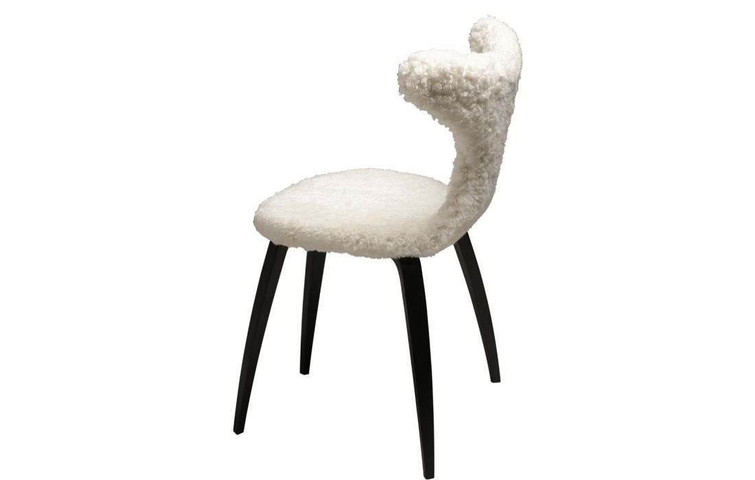 Cadeira com estofo em lã branca com pés em madeira maciça pintada de preto ou a cor de carvalho