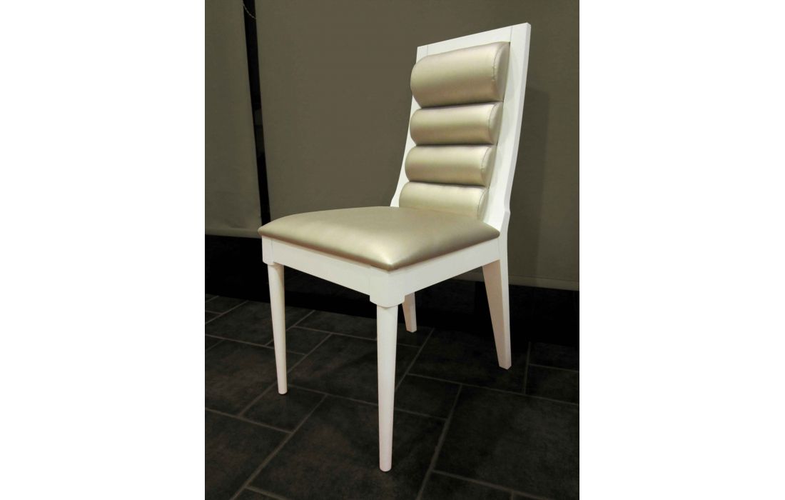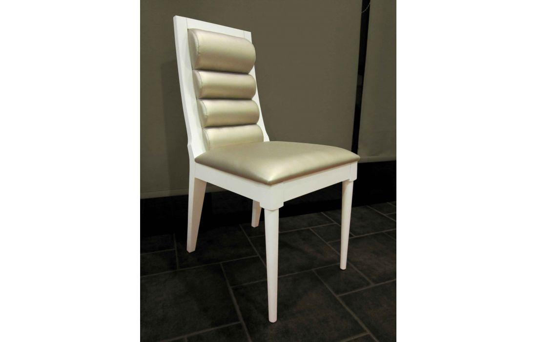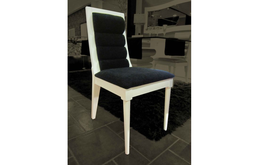 Cadeira em alto brilho, lacado mate ou folha de madeira c/ estofo em tecido ou pele sintética