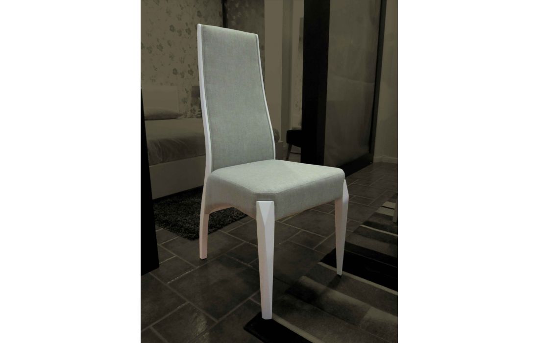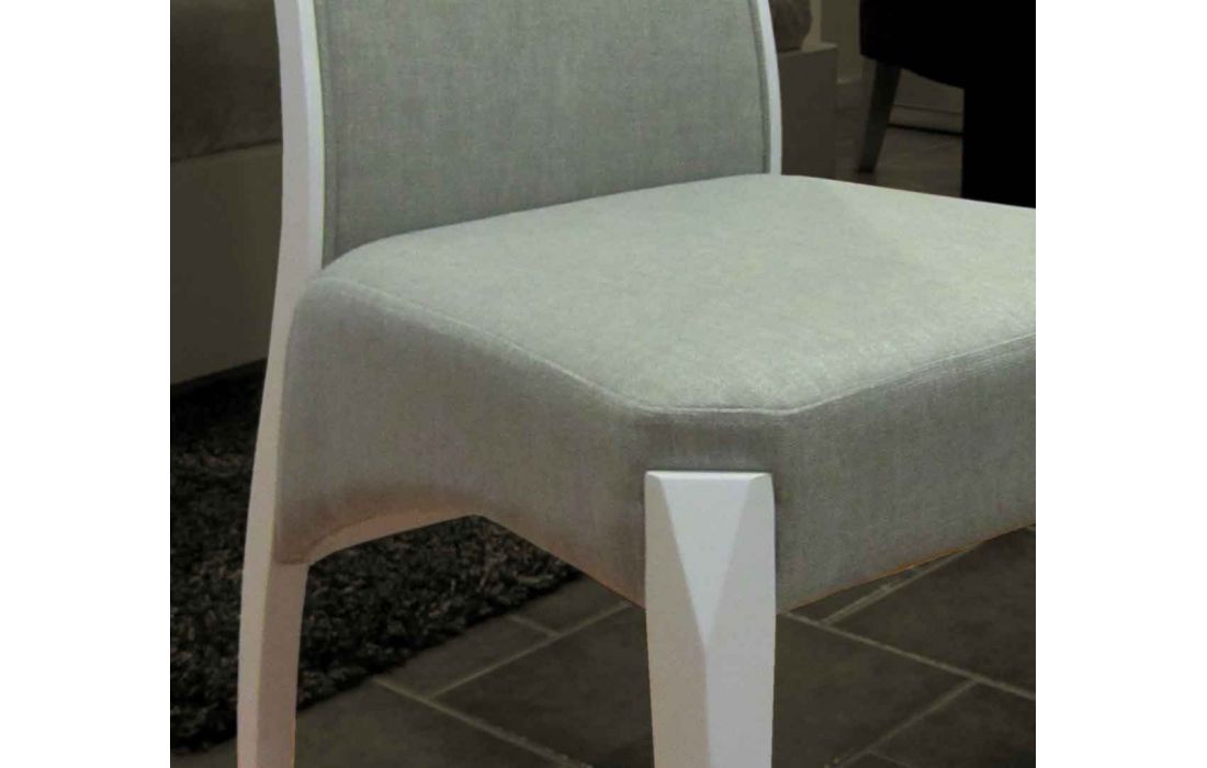 Cadeira com estofo em tecido e pés em lacado alto brilho, lacado mate ou folha de madeira