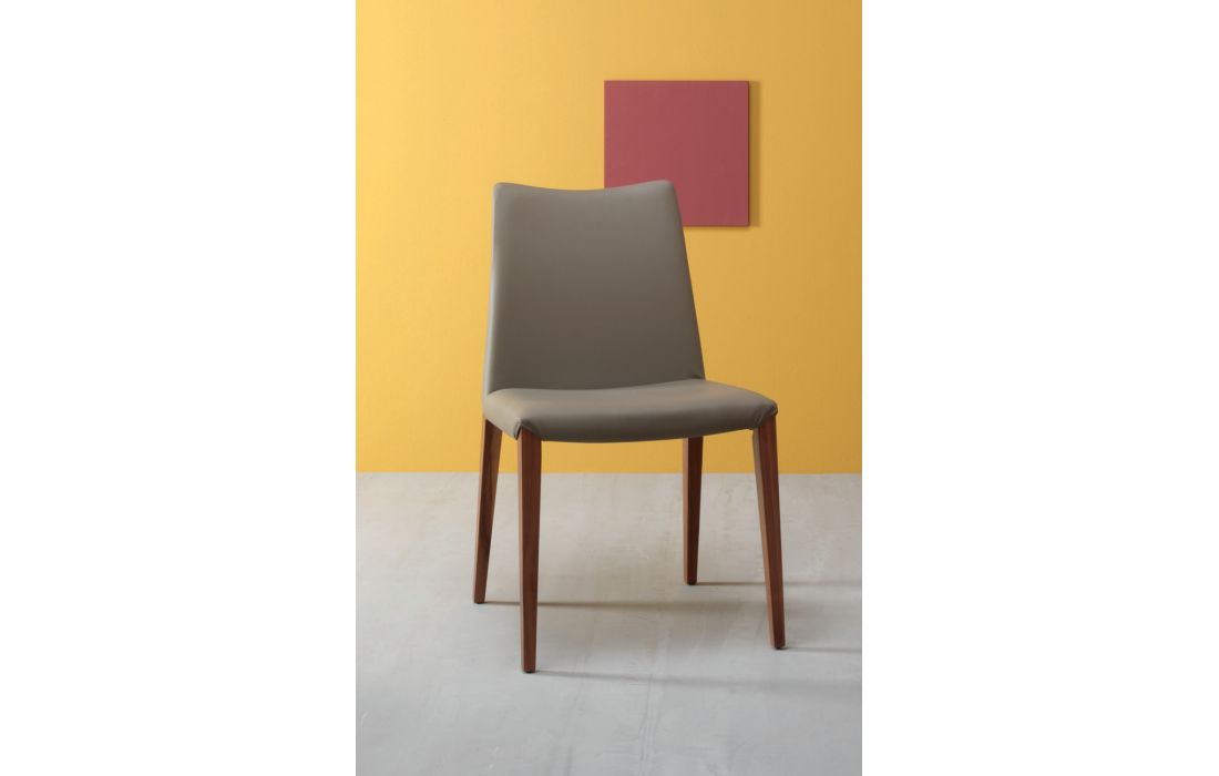 Cadeira com pernas de madeira em nogueira, carvalho queimado ou carvalho cinza com estofo em couro regenerado, pele sintética ou pele genuína