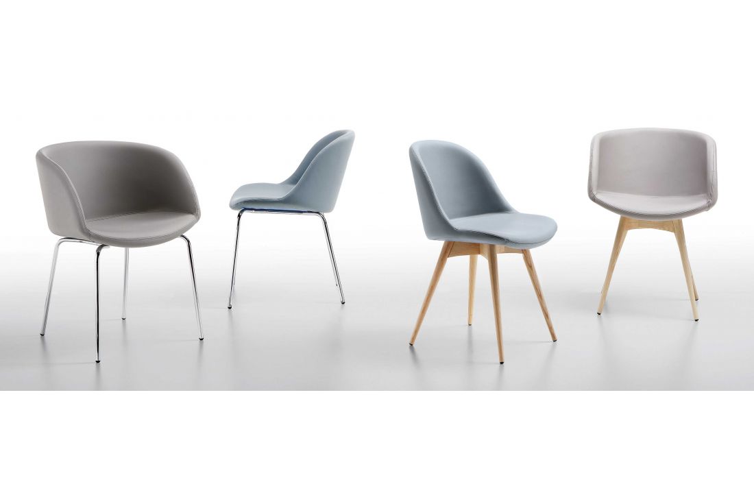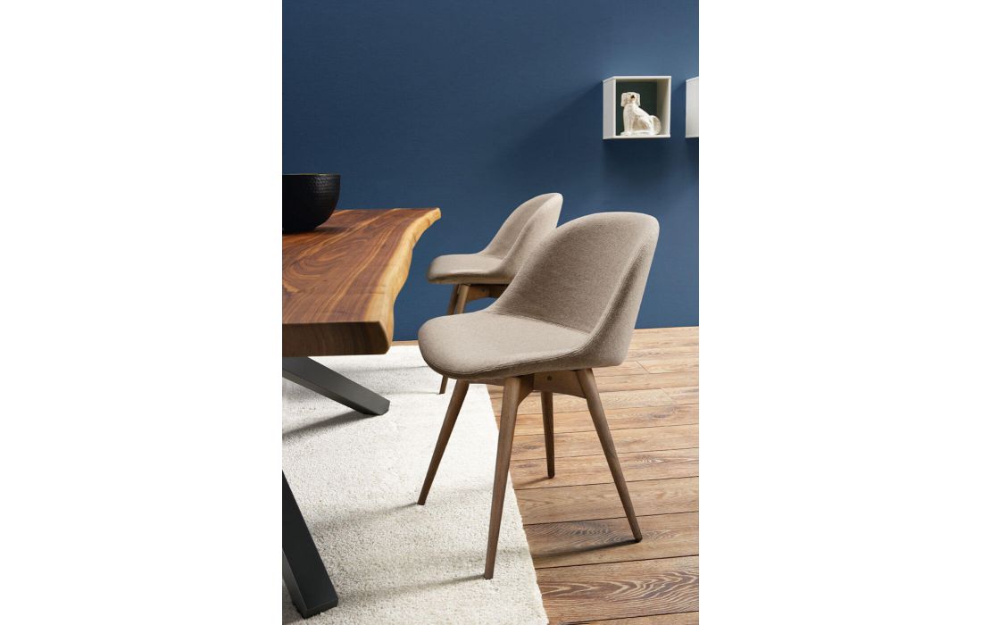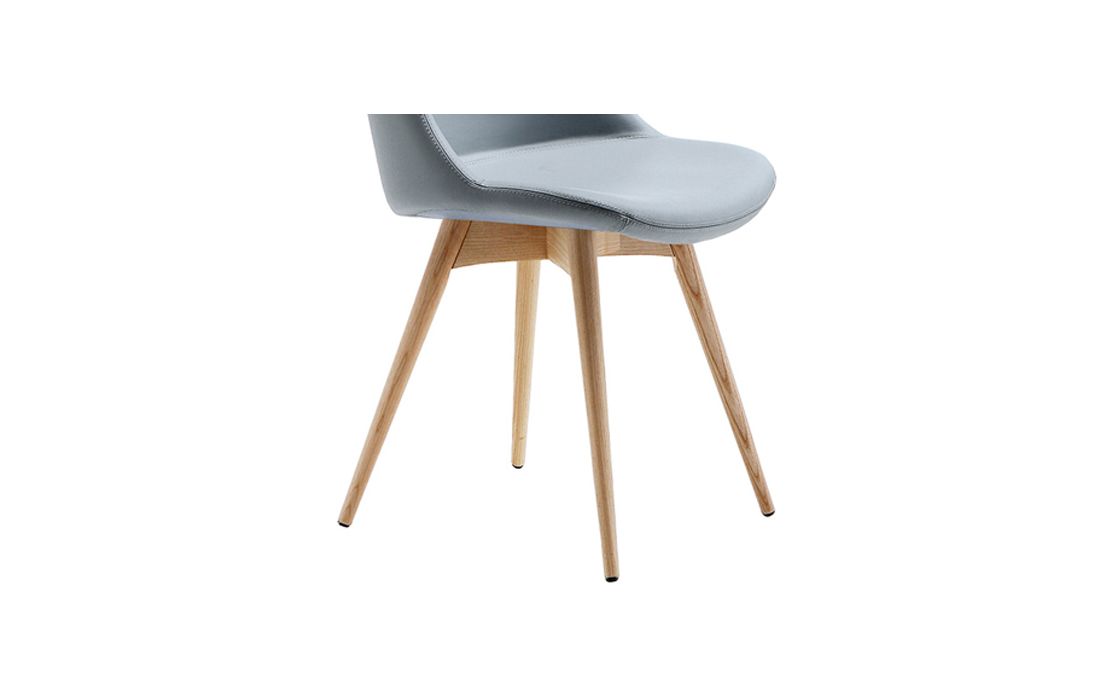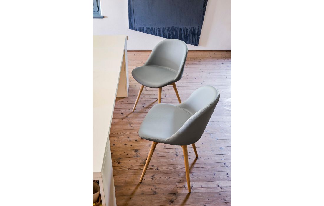 Cadeira revestida em tecido, ecopele sintética ou pele genuína com pés em nogueira, carvalho ou carvalho queimado