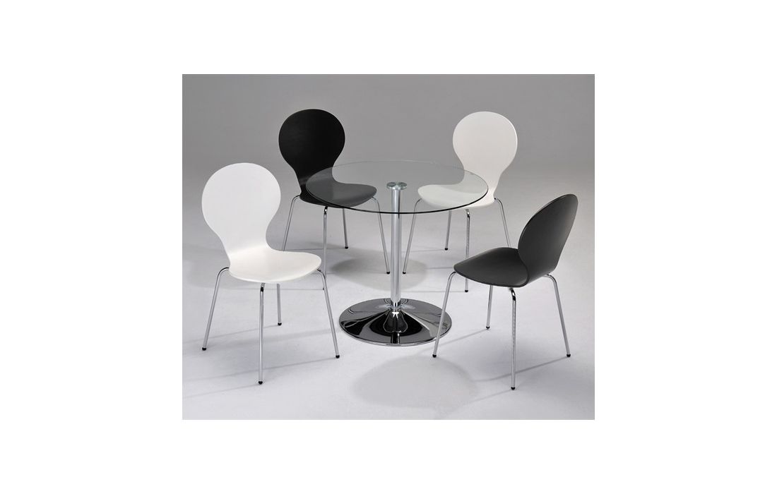 Cadeira com estrutura em madeira, acabamento em branco ou preto com pés em metal cromado.
