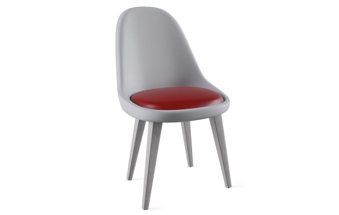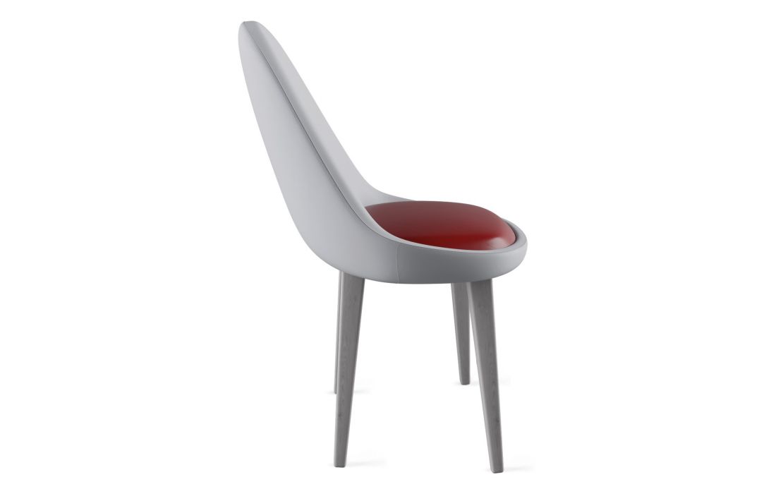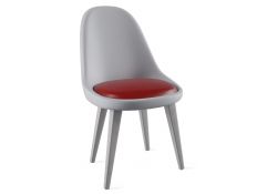 Cadeira nos vários revestimentos possíveis, com pés em madeira.
