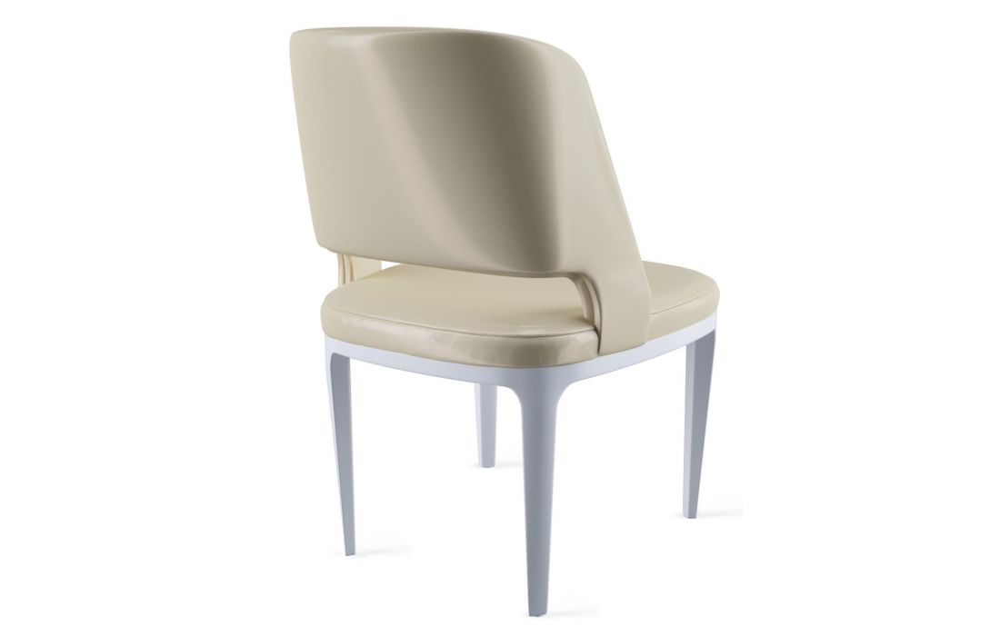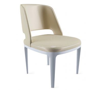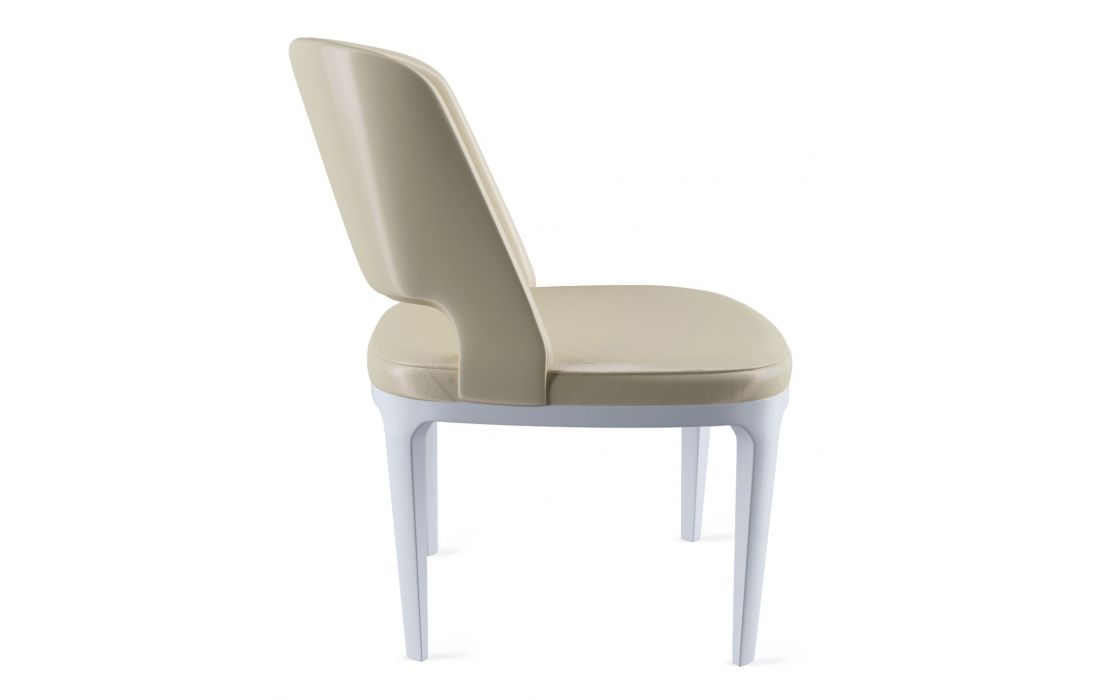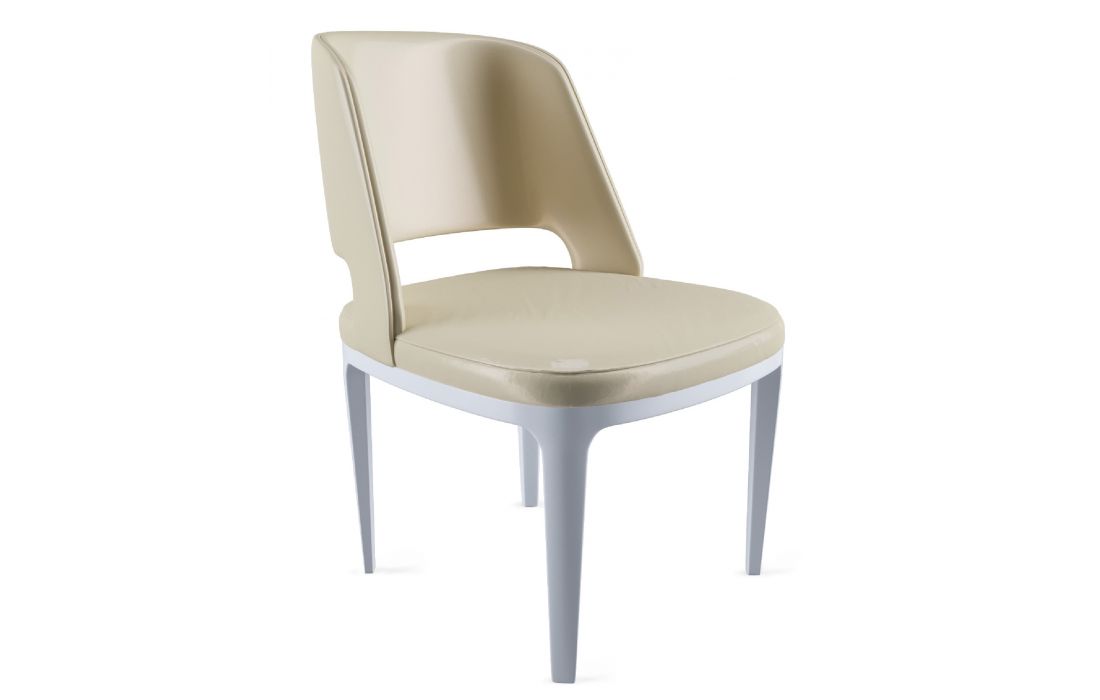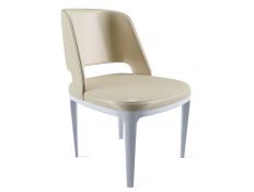 Cadeira nos vários revestimentos possíveis, com estrutura em madeira.