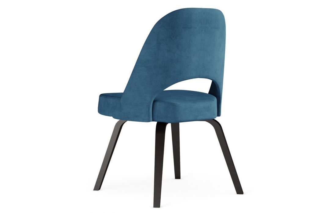 Cadeira nos vários revestimentos possíveis, com pés em madeira.