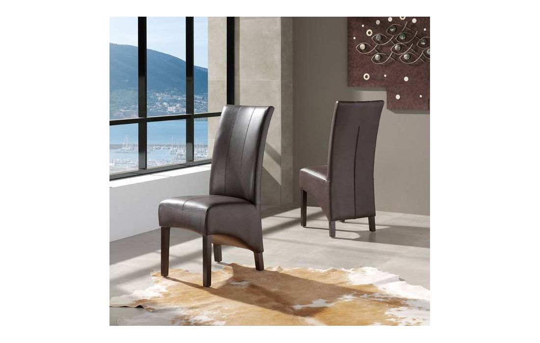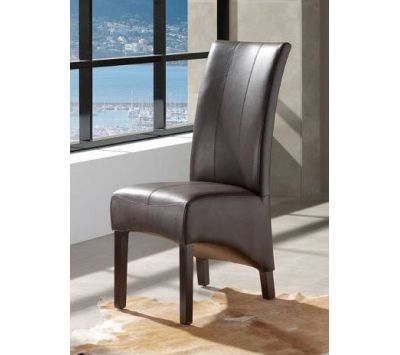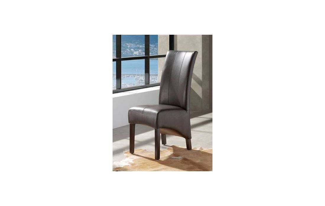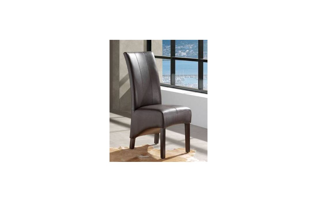 Cadeira com assento e costa em pele sintética de cor castanho e pés em madeira.Destinatário :