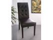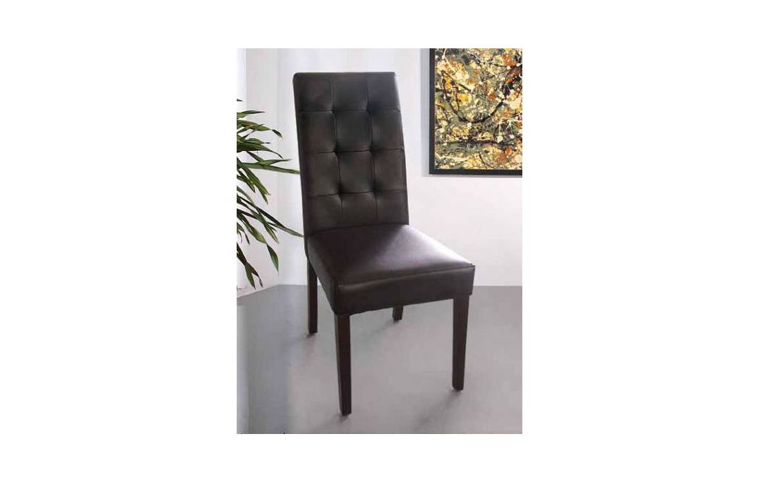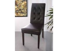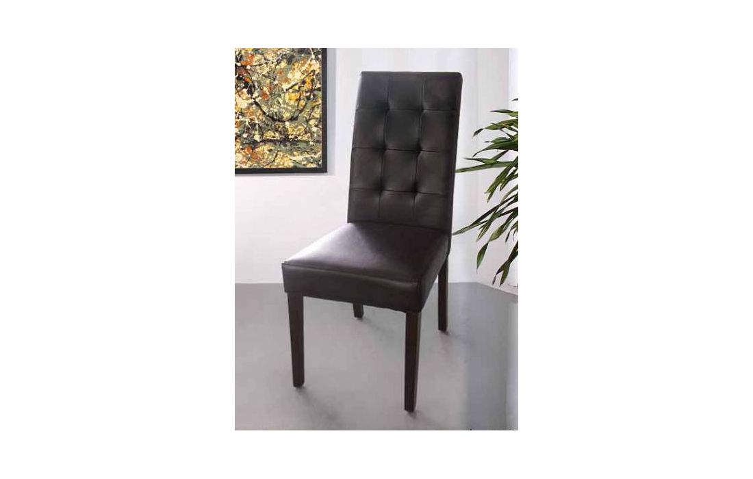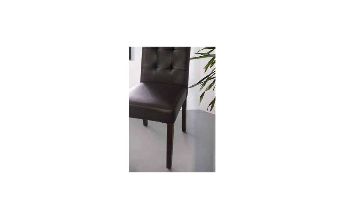 Cadeira com assento e costa em pele sintética de cor castanho e pés em madeira.Destinatário :