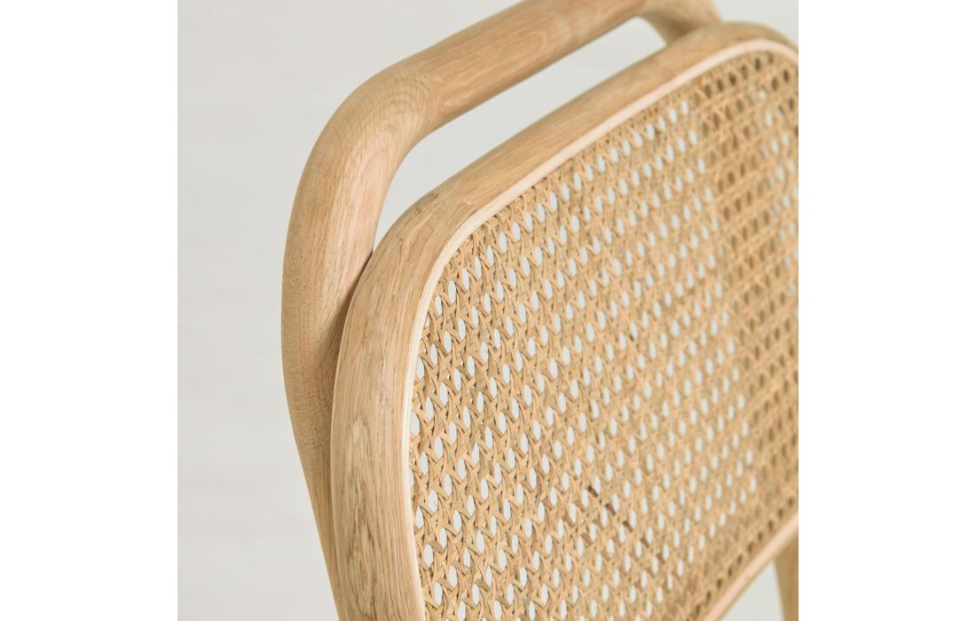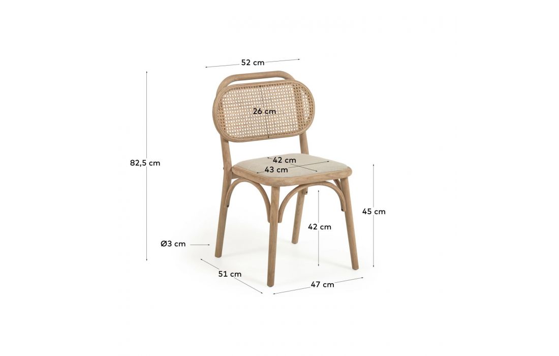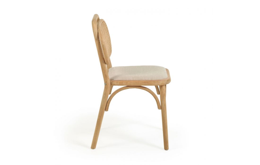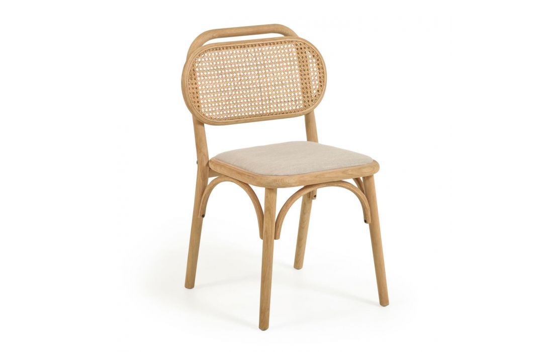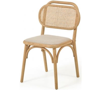 Cadeira em carvalho maciço com acabamento natural, encosto em palhinha e assento em tecido.Destinatário :