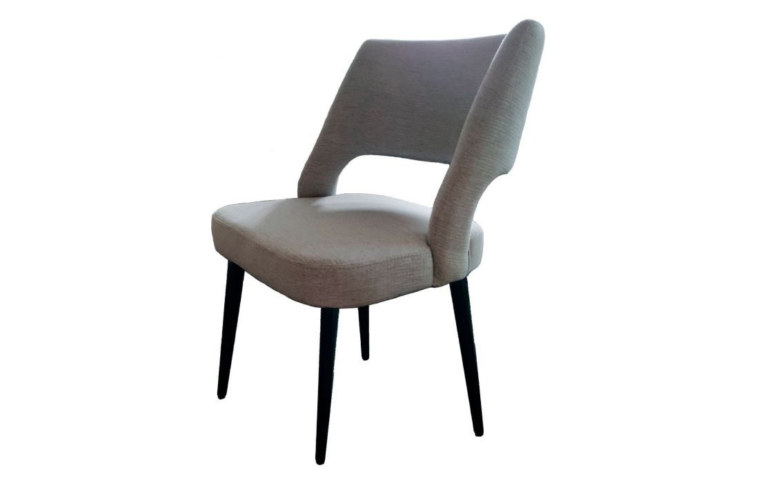 Cadeira com pés de madeira de freixo e revestimento em tecido nos vários acabamentos possíveis.