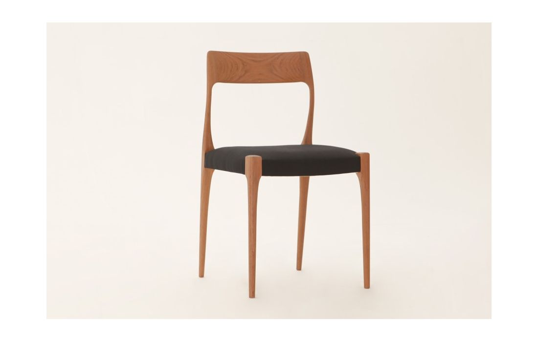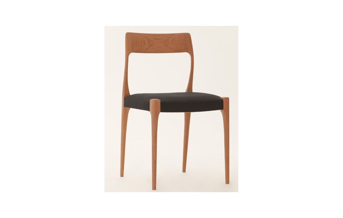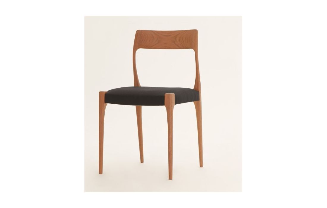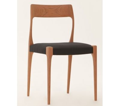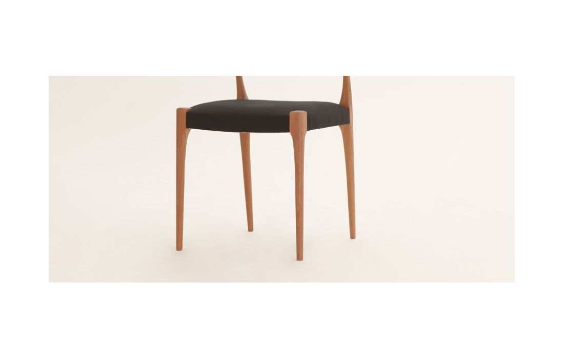 Cadeira em madeira de freixo e revestimento em tecido nos vários acabamentos possíveis.