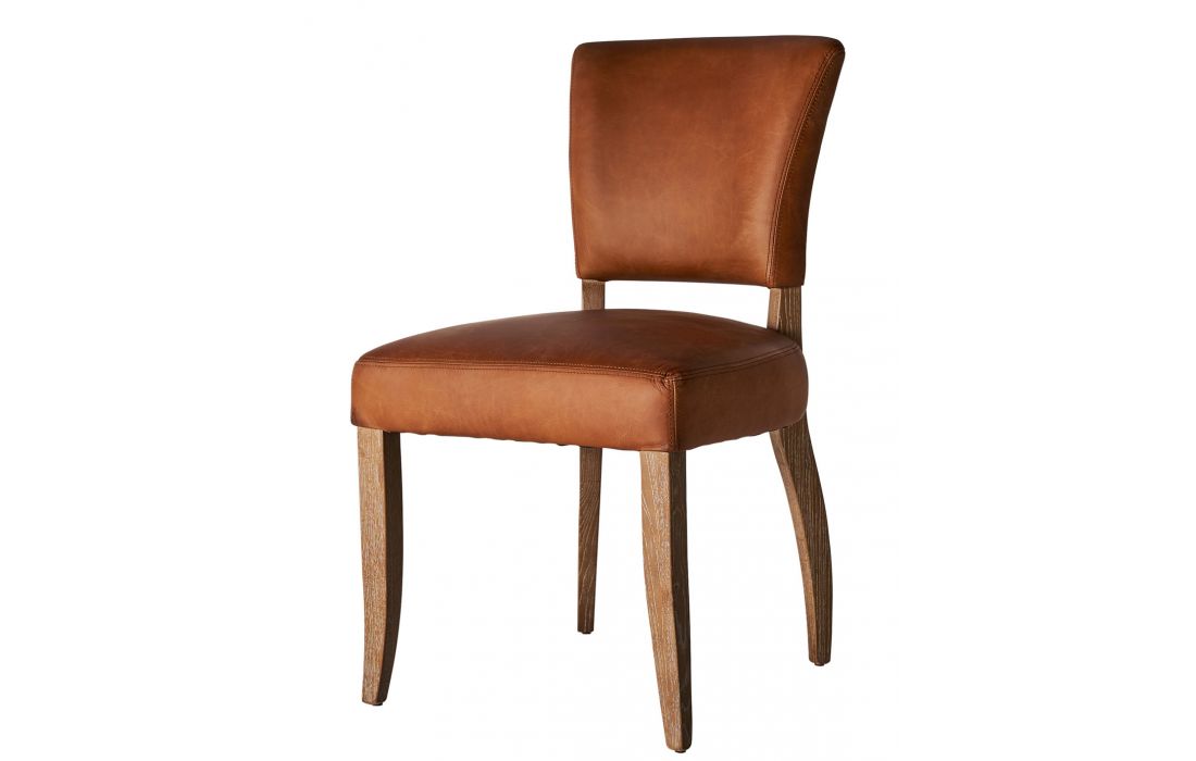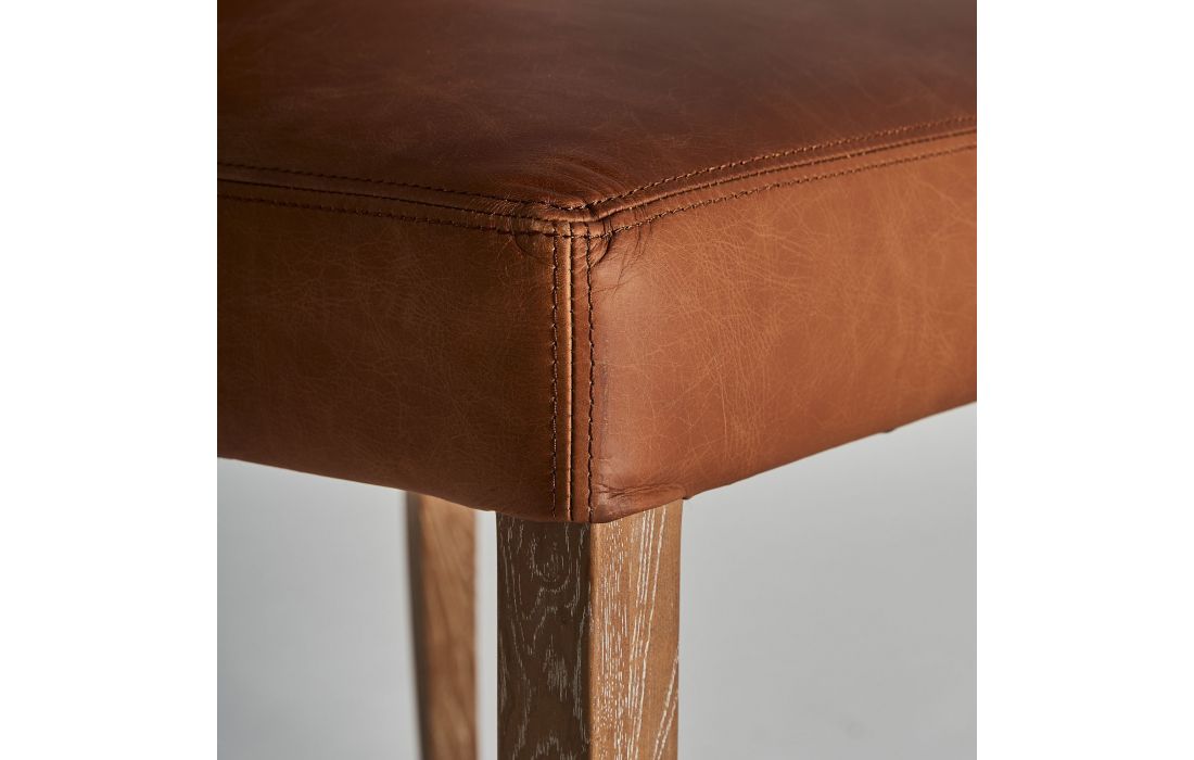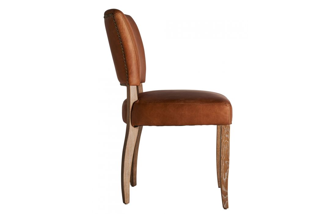 Cadeira em madeira de carvalho com acabamento decapê estofada em pele sintética