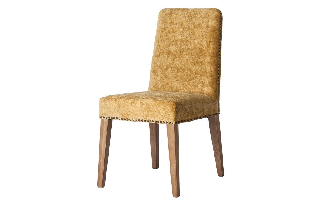 Cadeira em madeira de abeto estofada em tecido poliester cor ocre