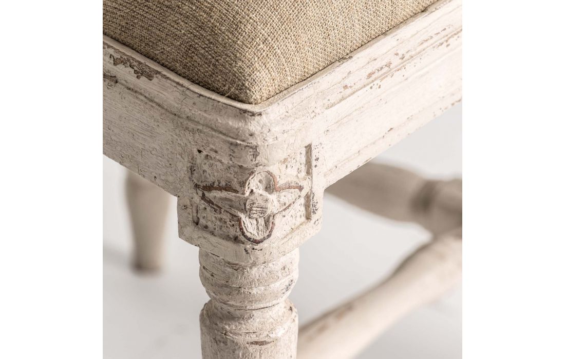 Cadeira em madeira de manga estofada em tecido de algodão cor bege
