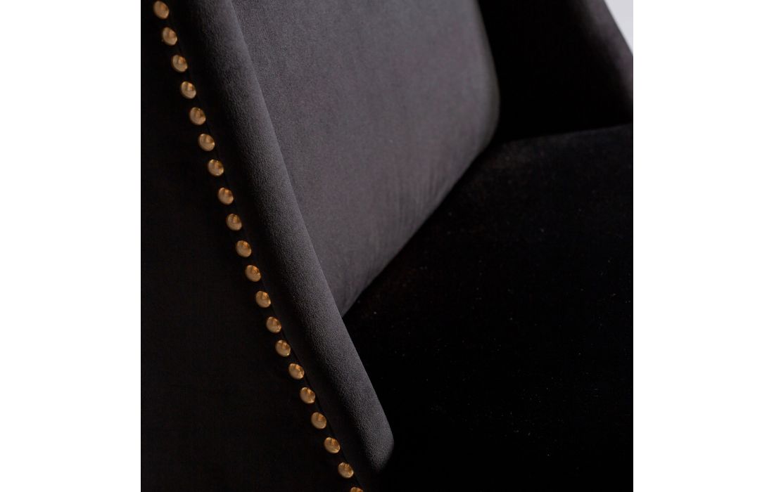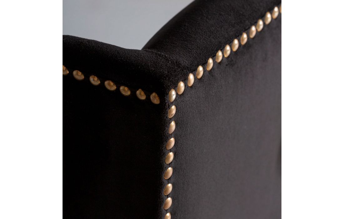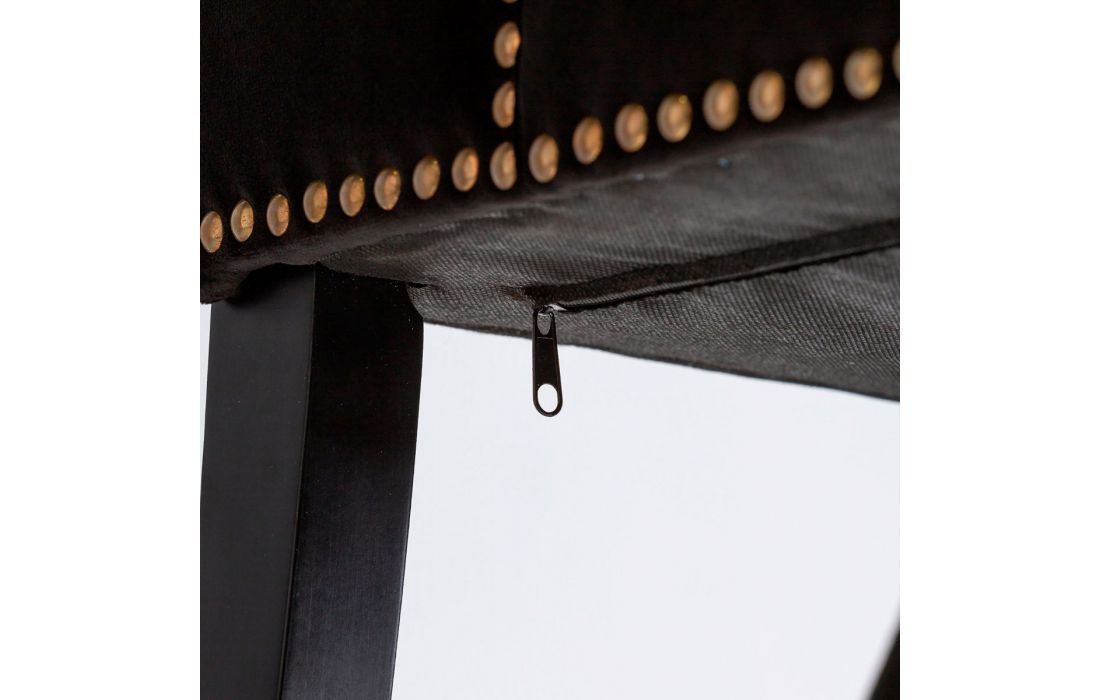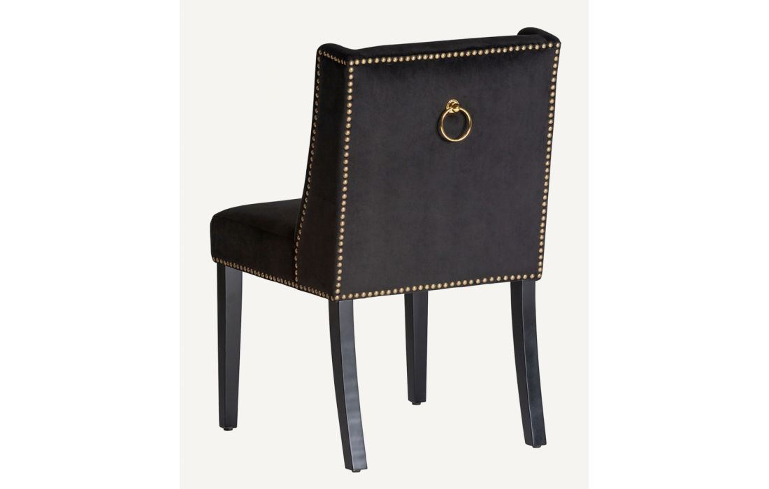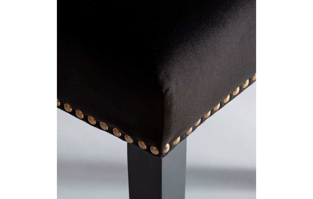 Cadeira com pés de madeira de pinho estofada em tecido de veludo cor preta