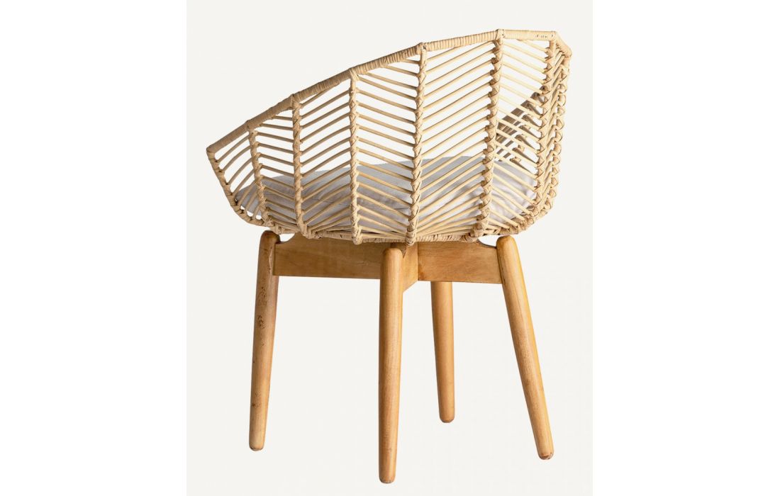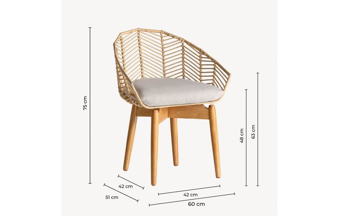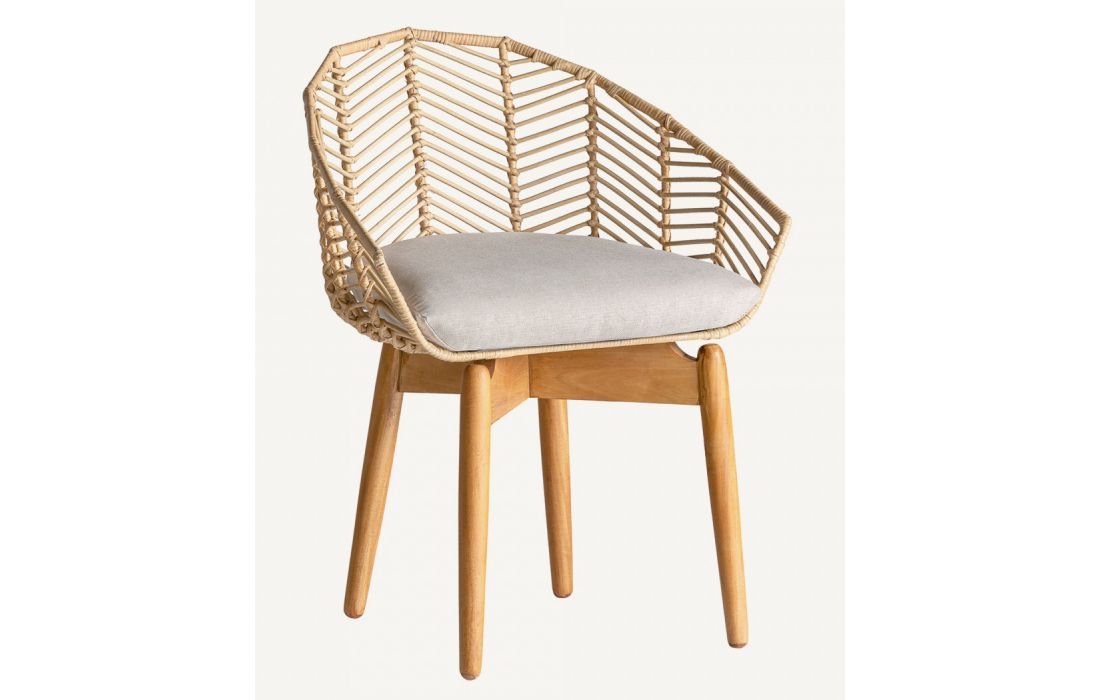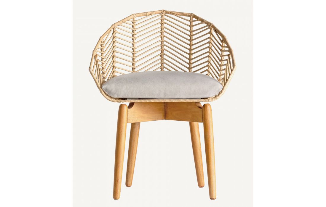 Cadeira de braços em madeira e palhinha cor natural e assento estofado em tecido de algodão