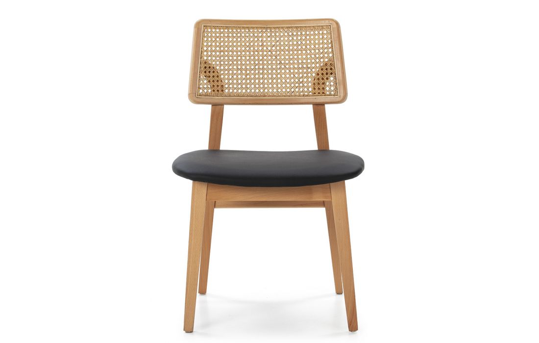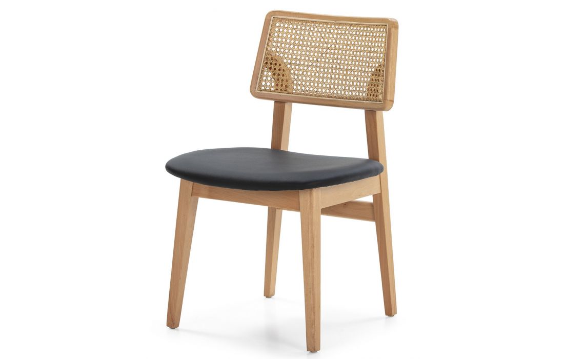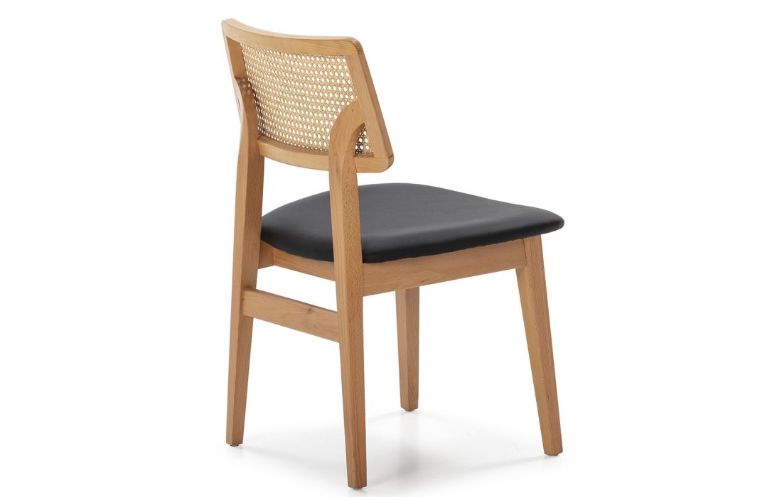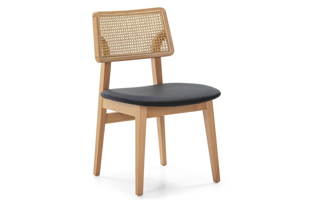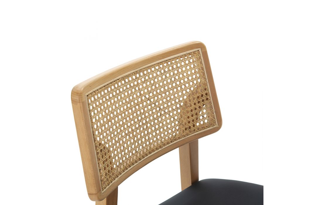 Cadeira em madeira e palhinha cor natutal e assento em pele preta