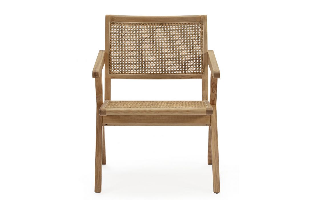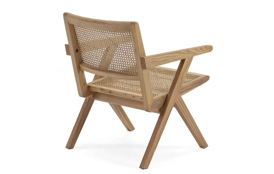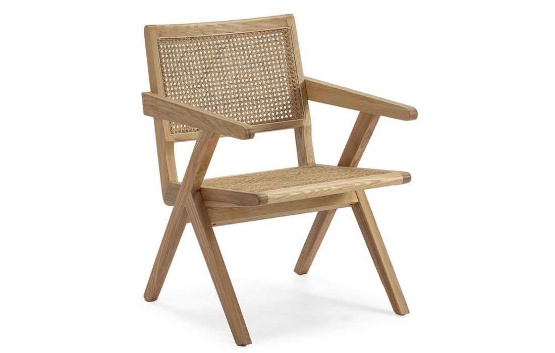 Cadeira de braços em madeira de carvalho e palhinha cor natural