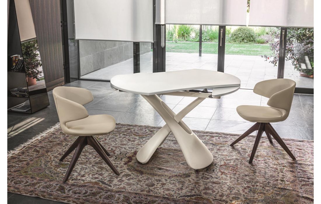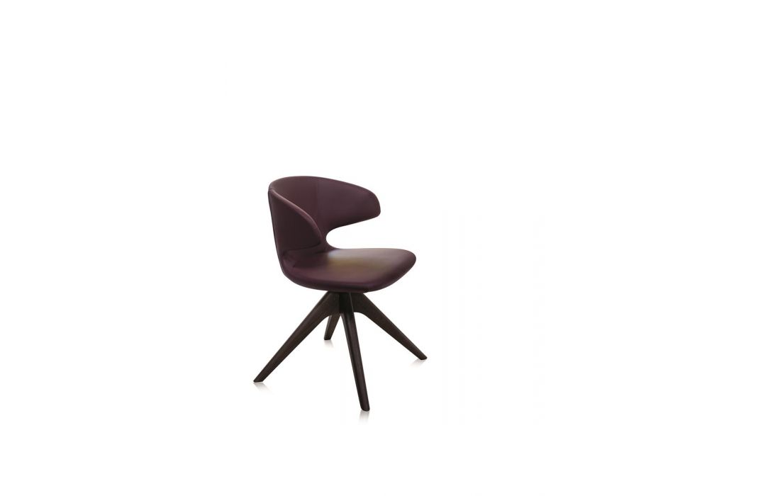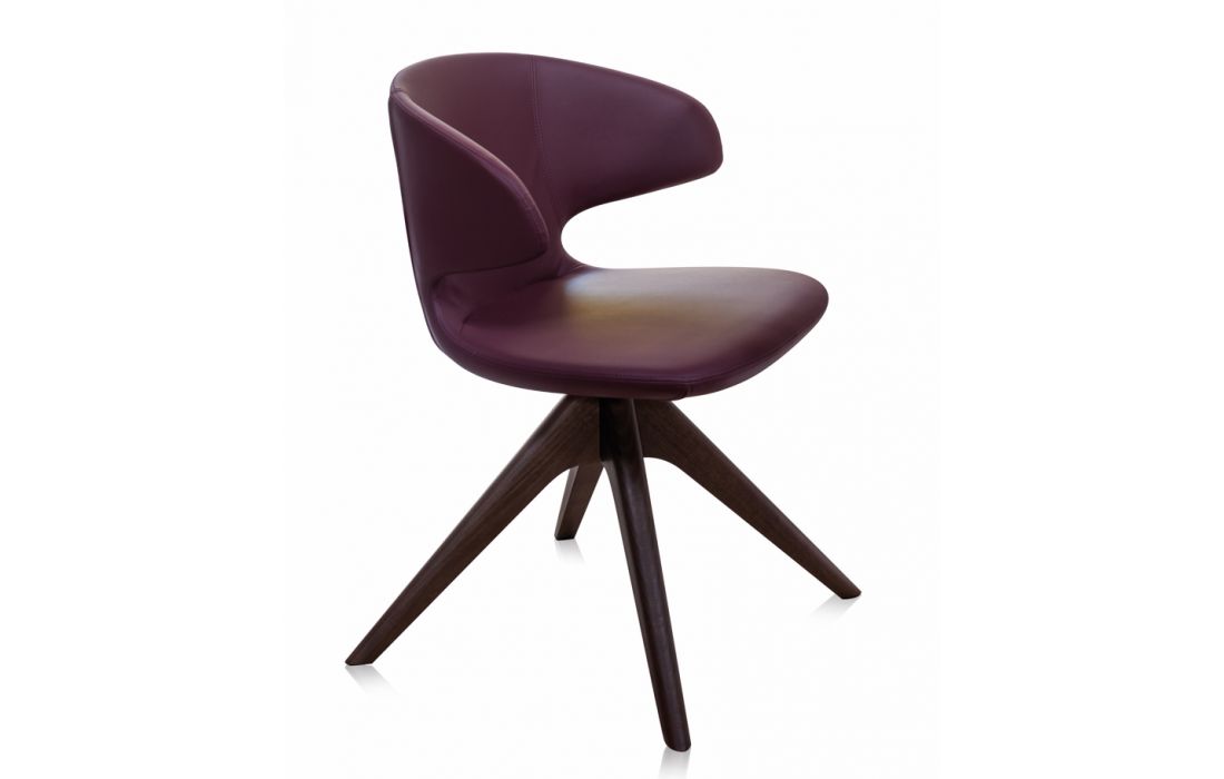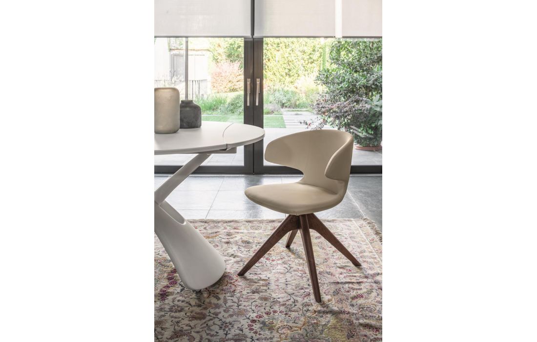 Cadeira giratória com pernas em madeira maçica de freixo e assento em tecido, pele ou ecopele