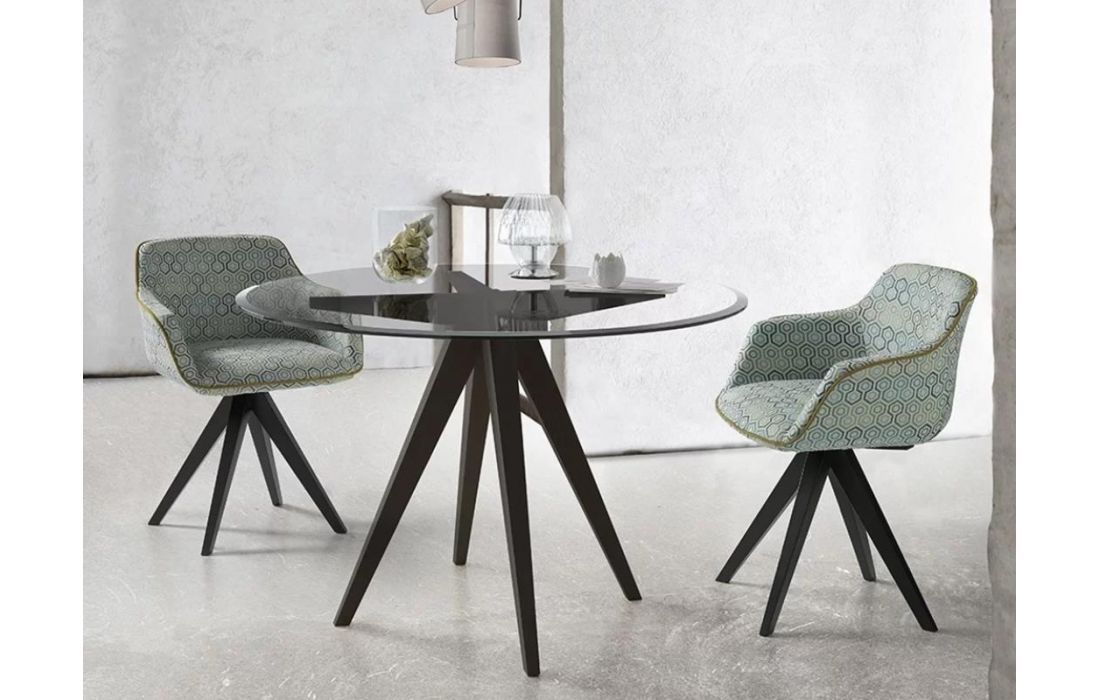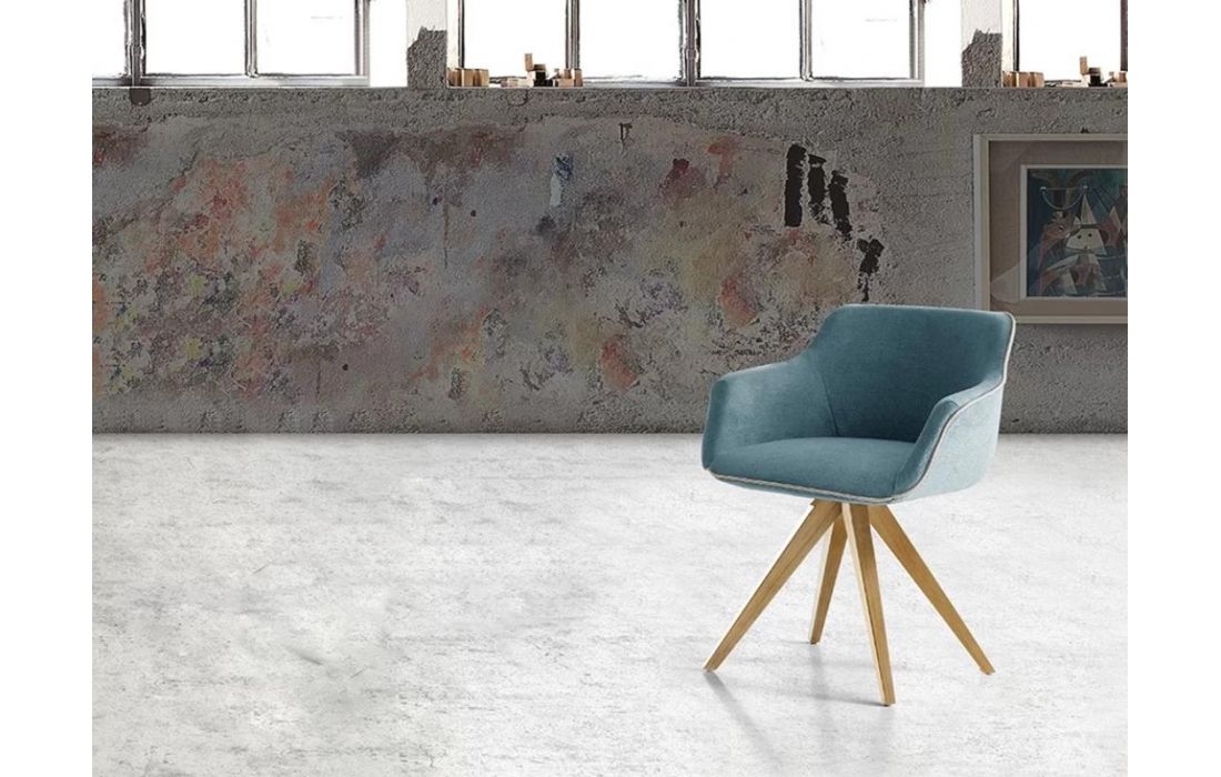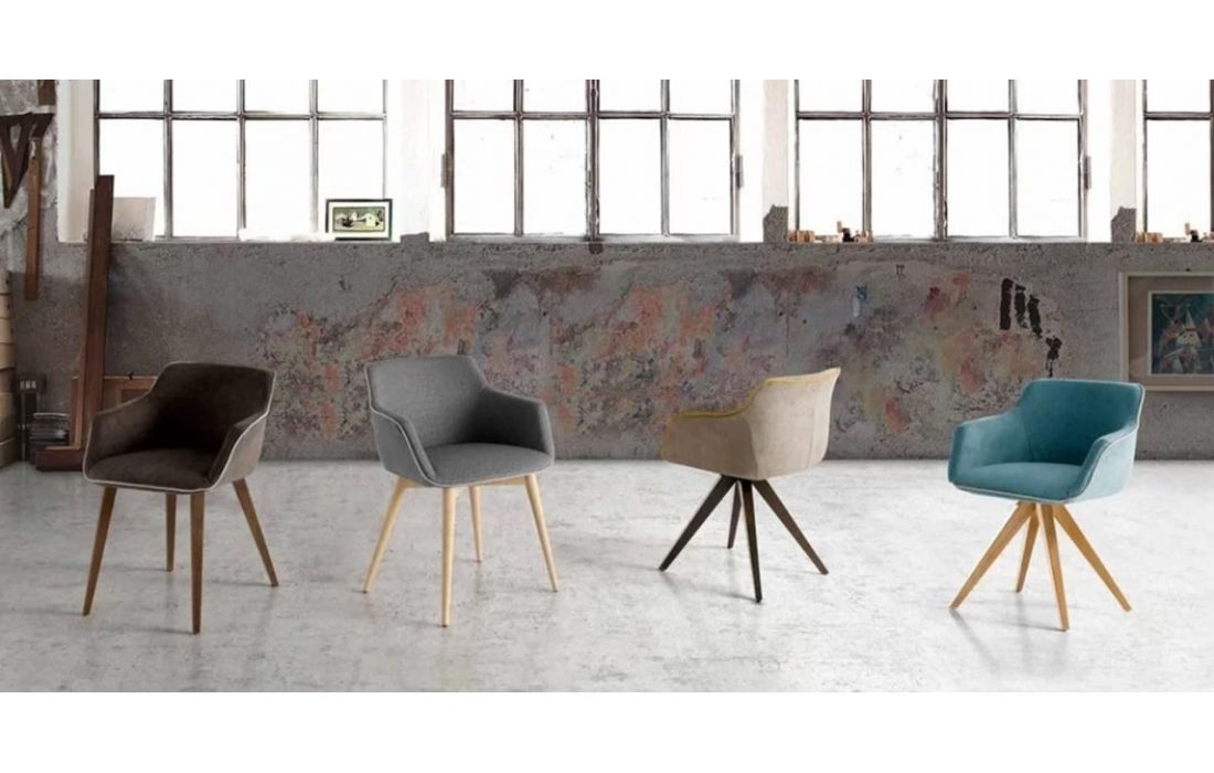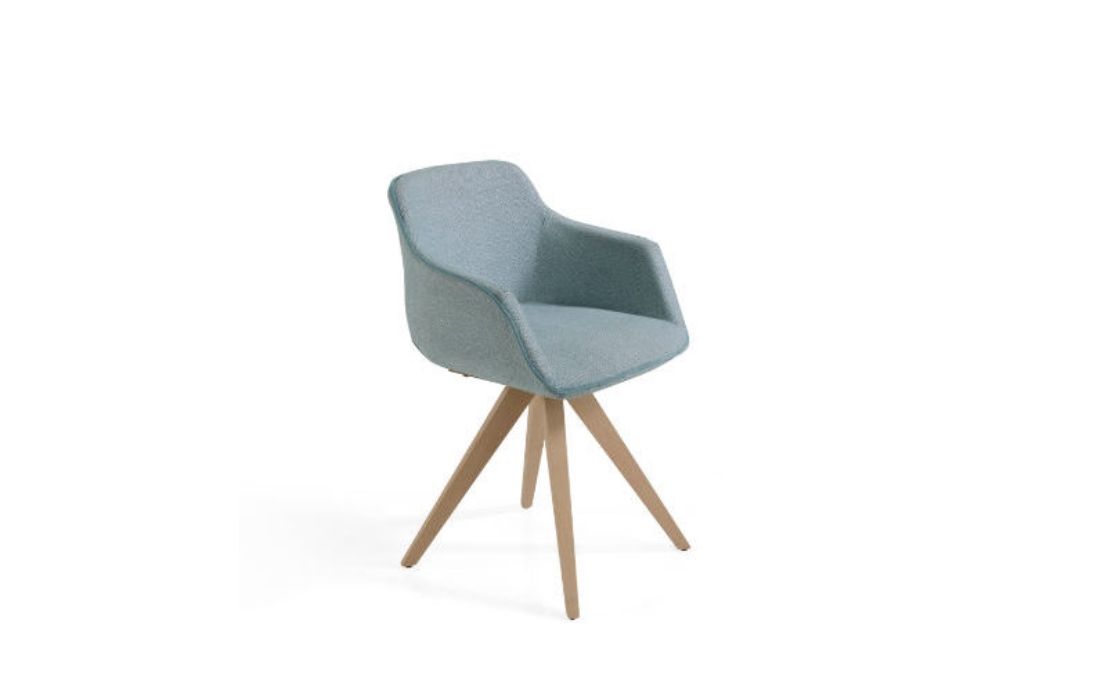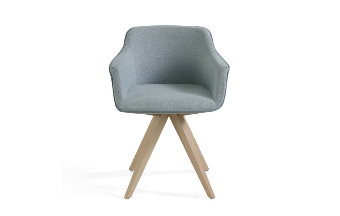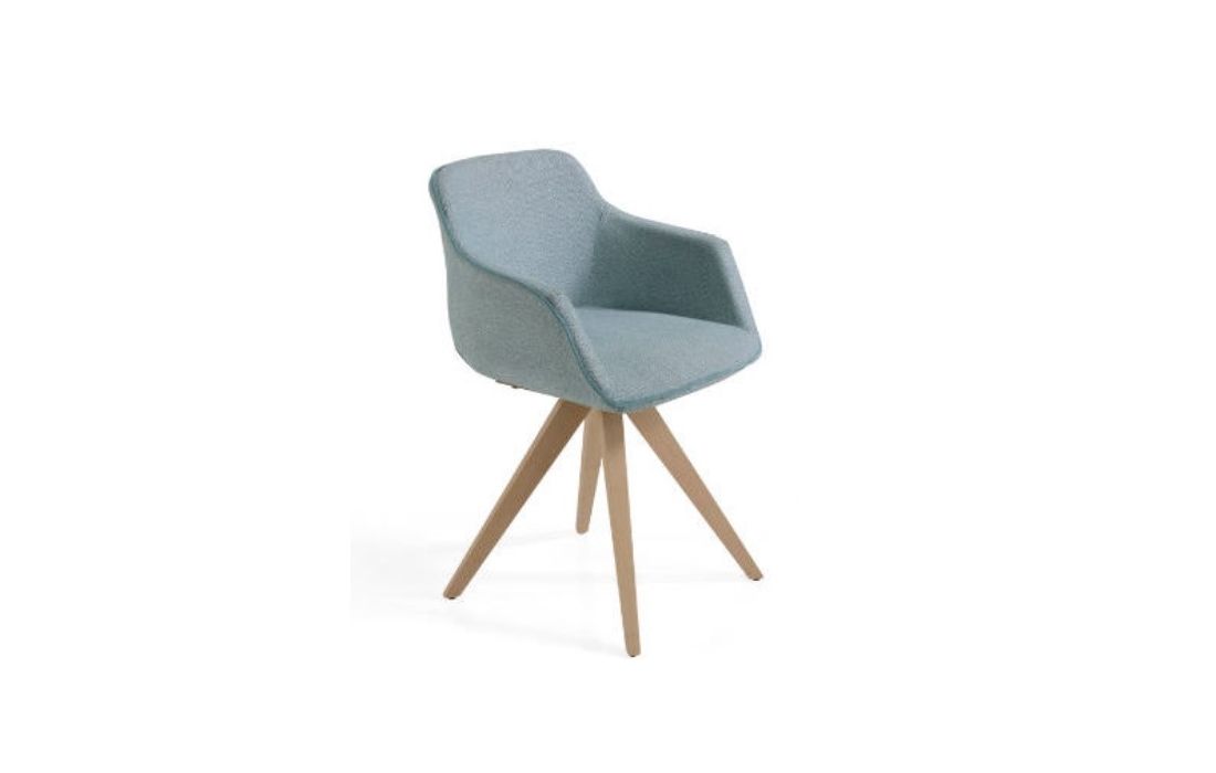 Cadeira em tecido com pés em madeira.