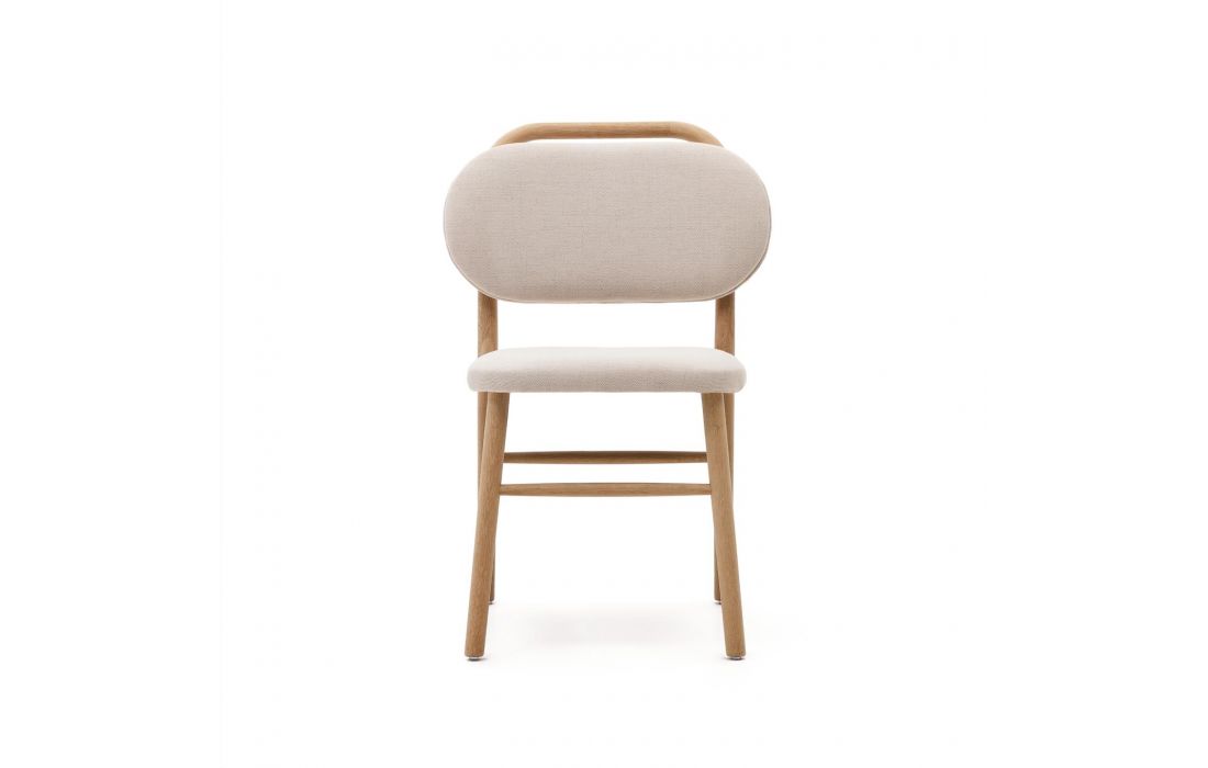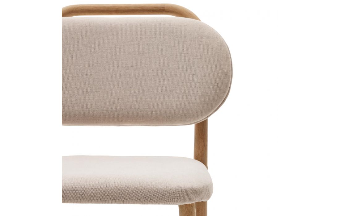 Cadeira com estrutura em madeira maciça de carvalho e estofo em tecido cor bege suave.
