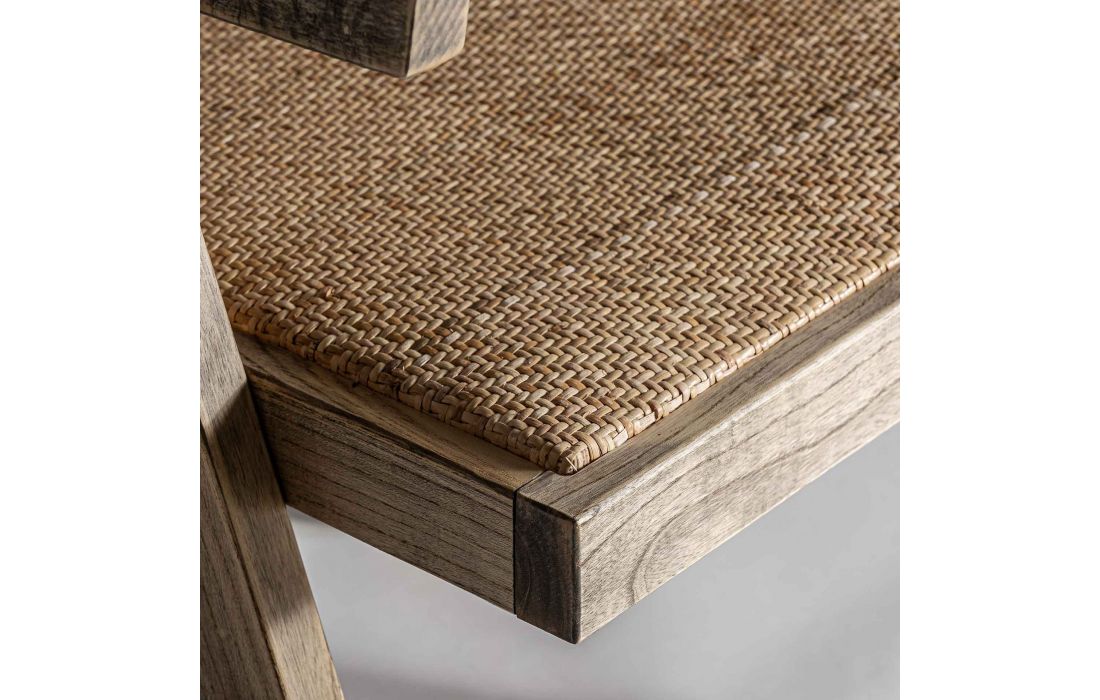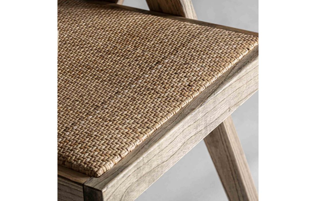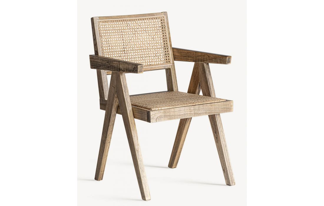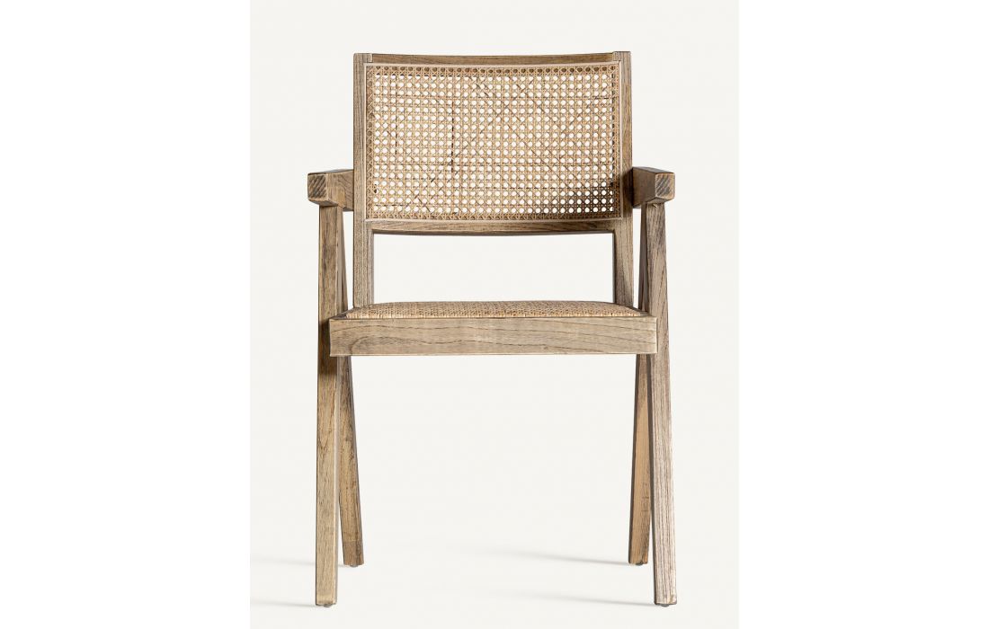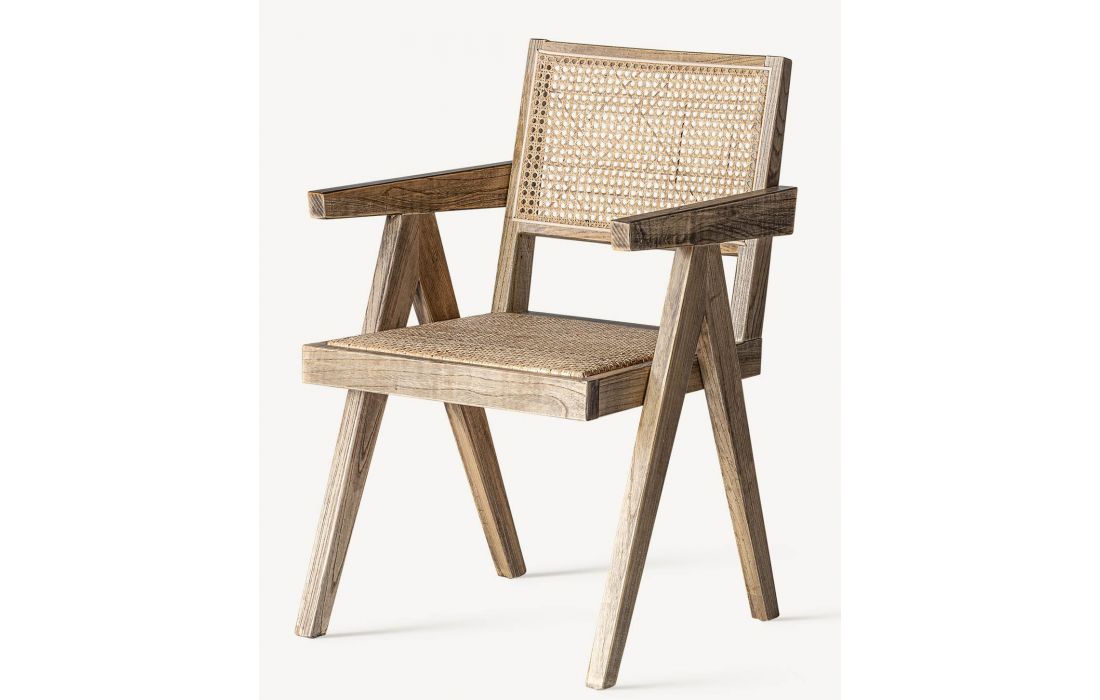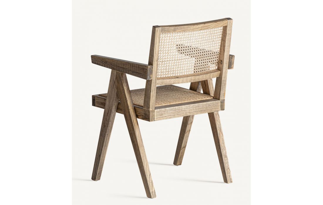 Cadeira com braços em madeira de olmo e palhinha cor natural