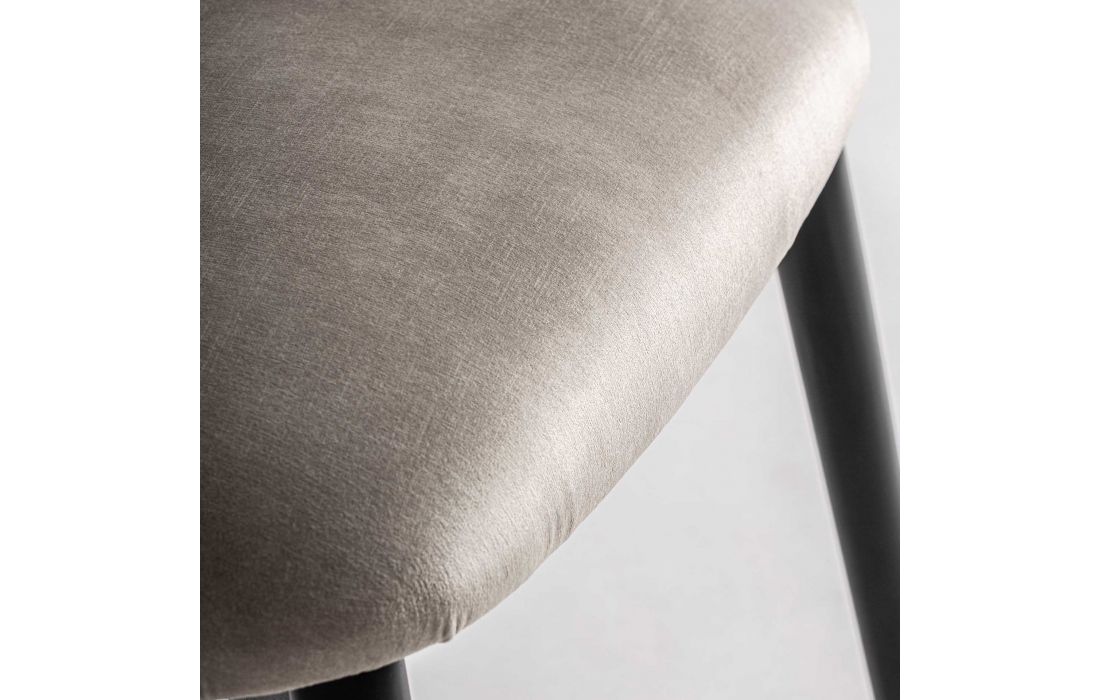 Cadeira com estrutura em madeira de arce cor preta, assento e costa estofada em tecido poliester cor bege