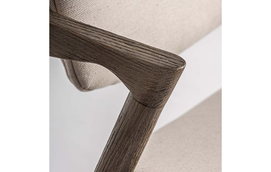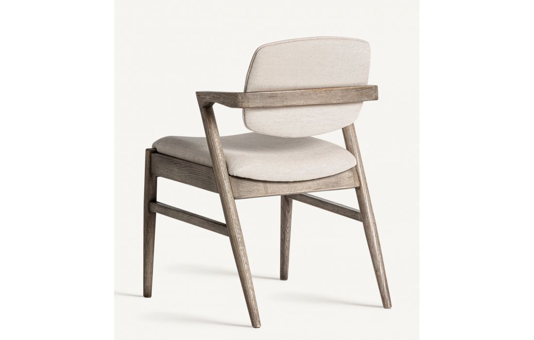 Cadeira com estrutura em madeira de freixo e estofada em tecido de linho