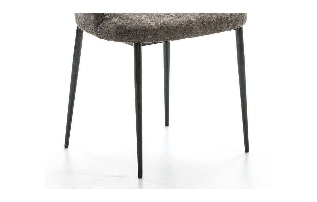 Cadeira com metal preto e tela castanha.