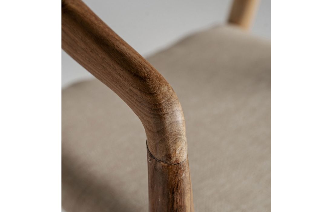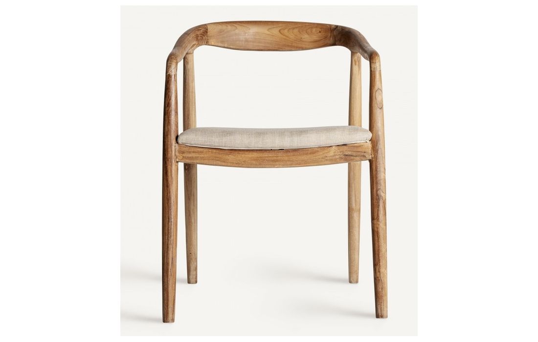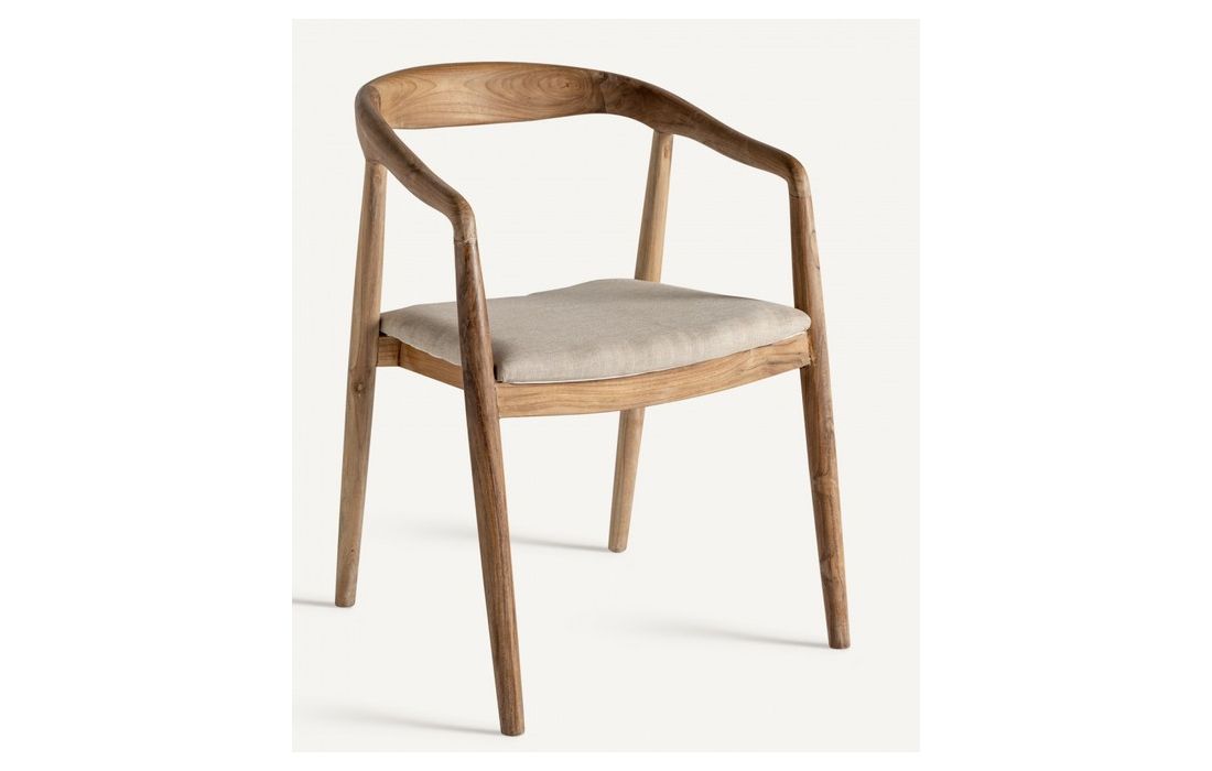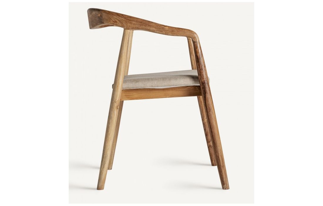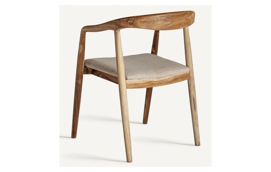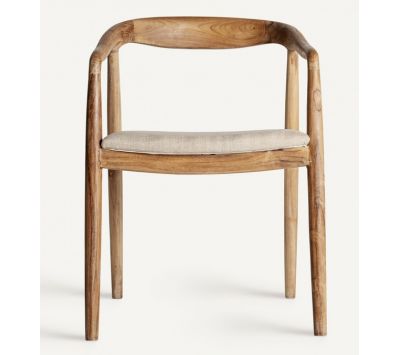 Cadeira no estilo colonial em madeira de teca em castanho e tecidoDestinatário :
