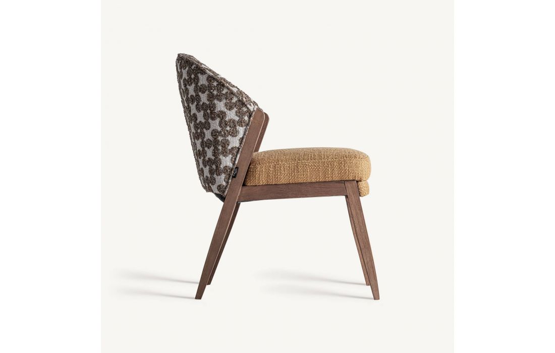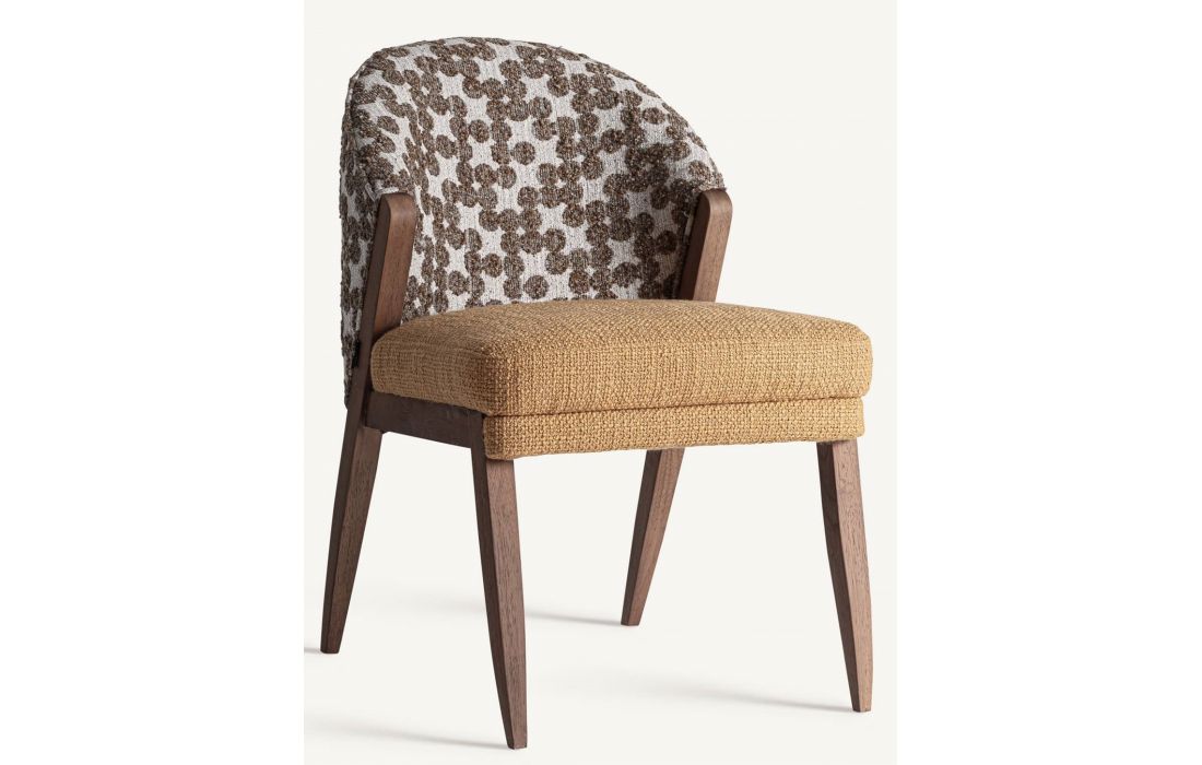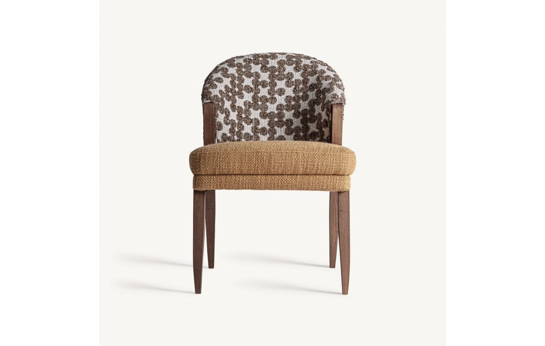 A cadeira Kalesha, combina tradição têxtil e design clássico. A mistura de tons proporciona textura, calor e presença.