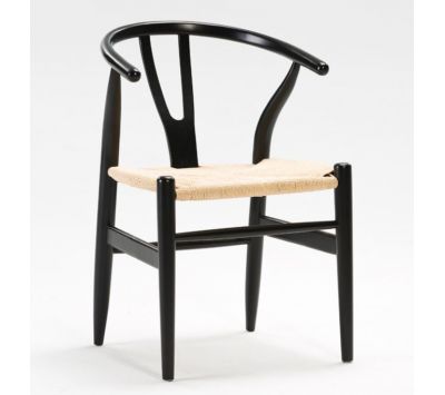 Cadeira em madeira pintada em preto ou branco com rattan.