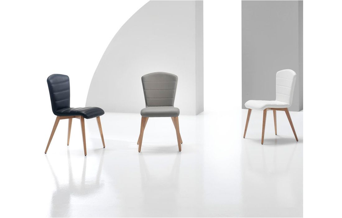 Cadeira em tecido, ecopele ou pele genuína com pés em faia ou carvalho