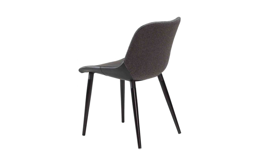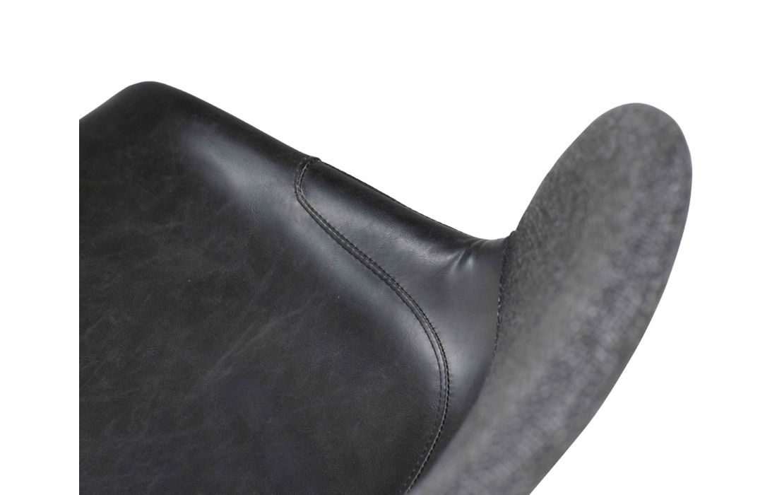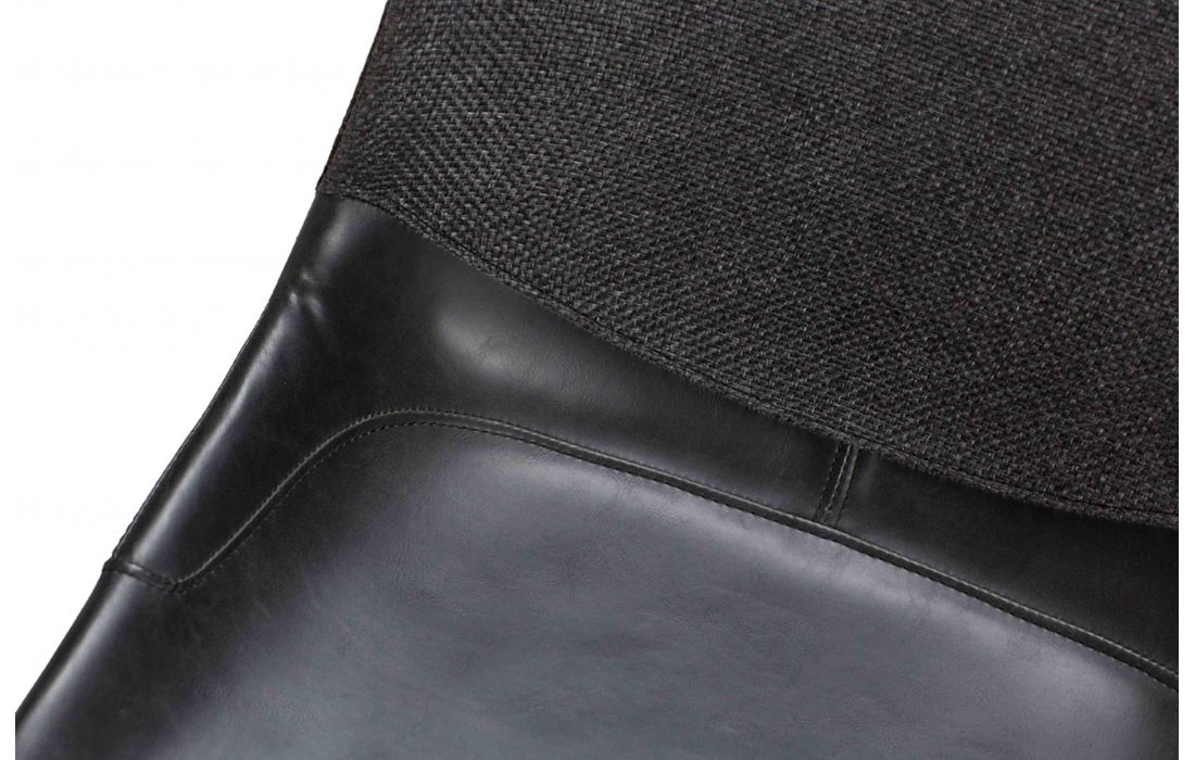 Cadeira com estofo em mistura de pele sintética vintage e tecido cinza com pés em metal preto