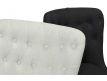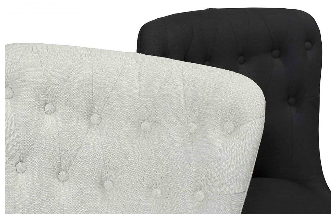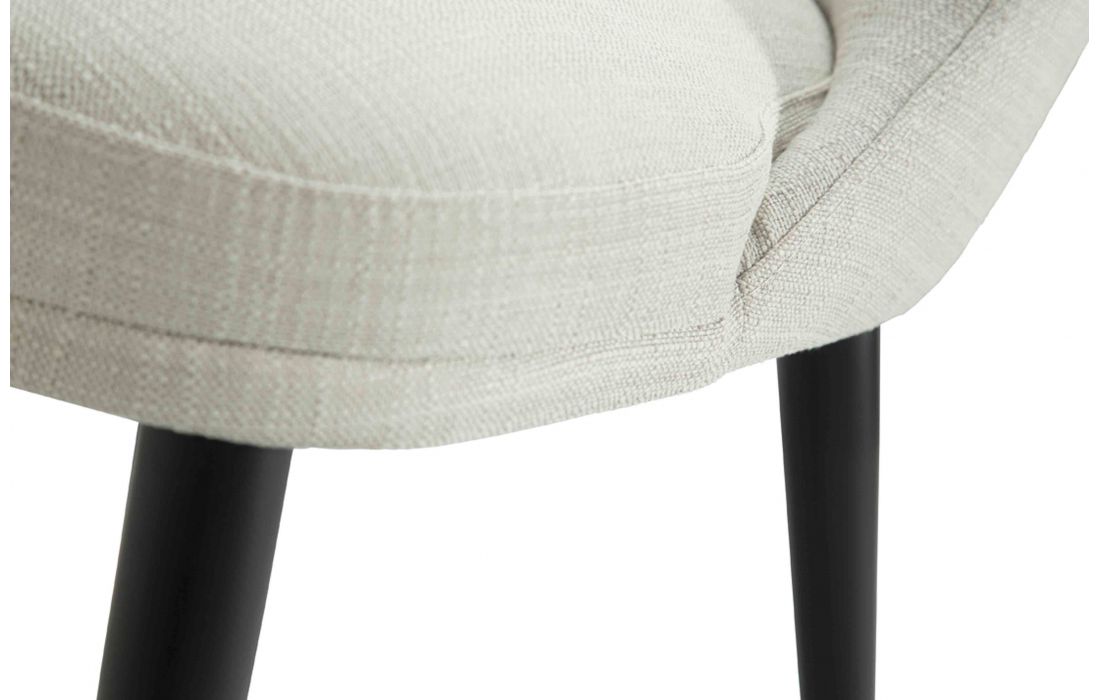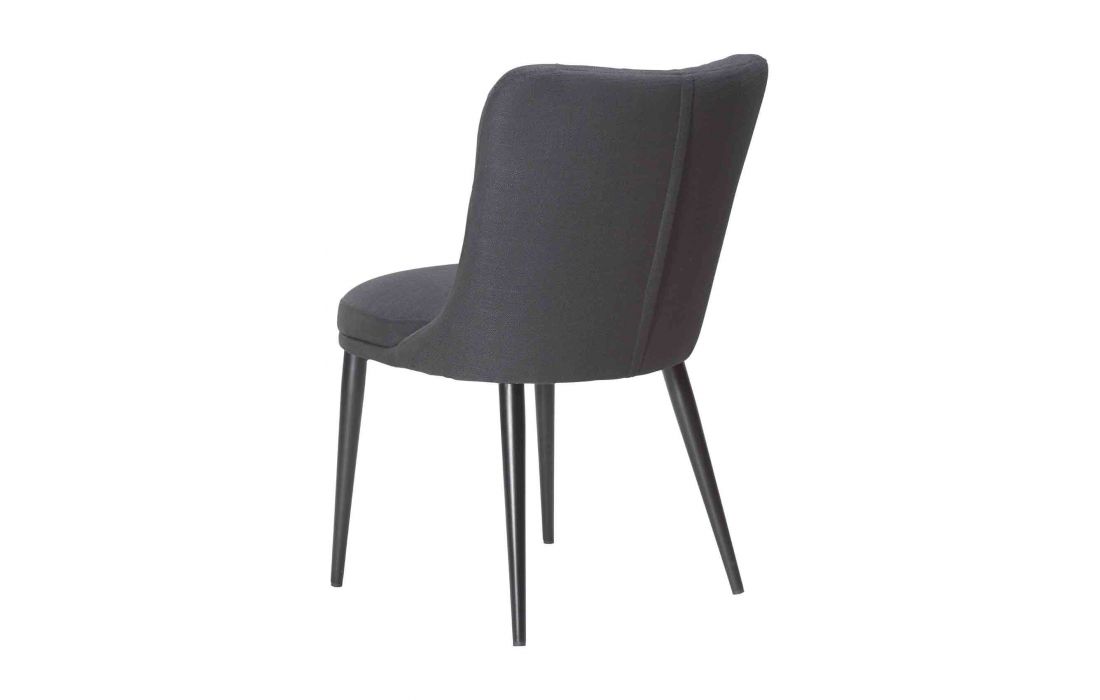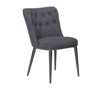 Cadeira com estofo em tecido preto ou bege com pés em metal preto