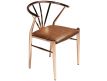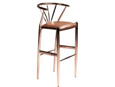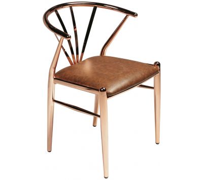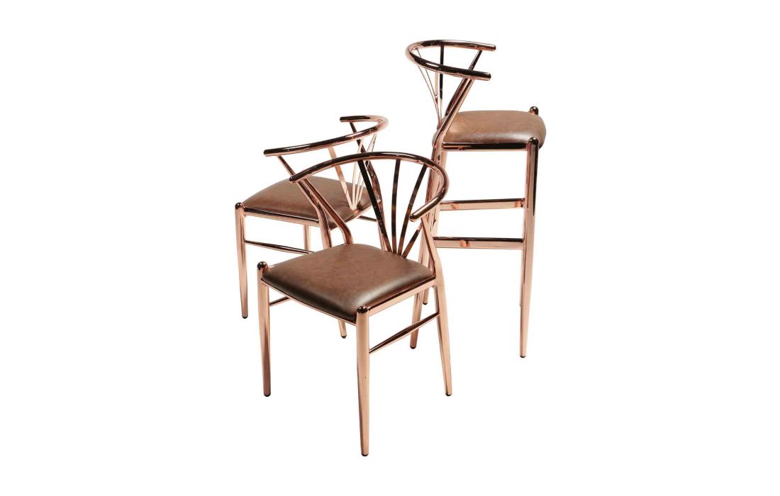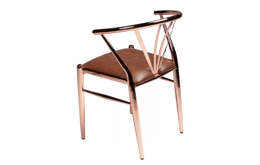 Cadeira com estrutura em metal cobre e estofo em pele sintética castanha