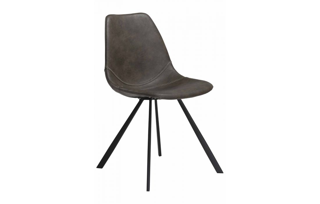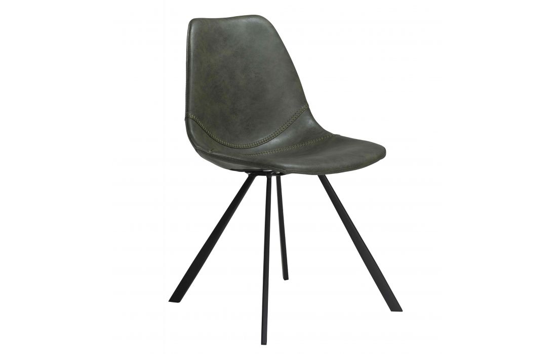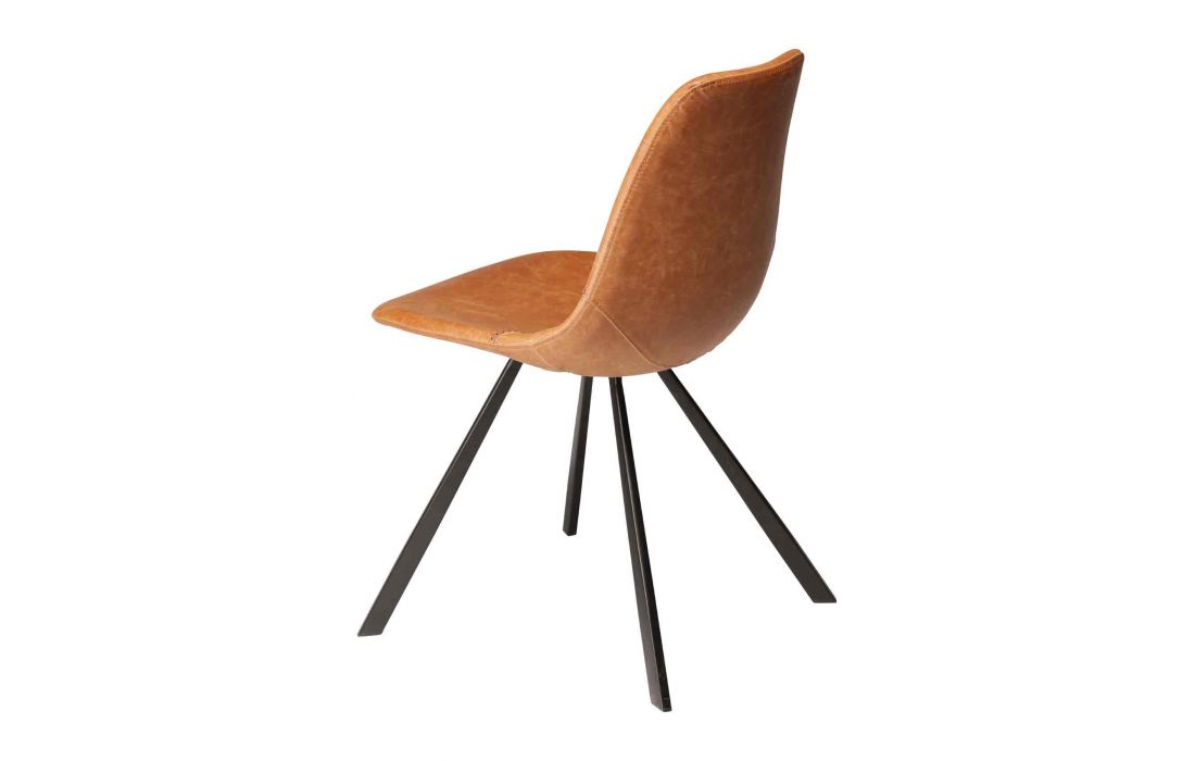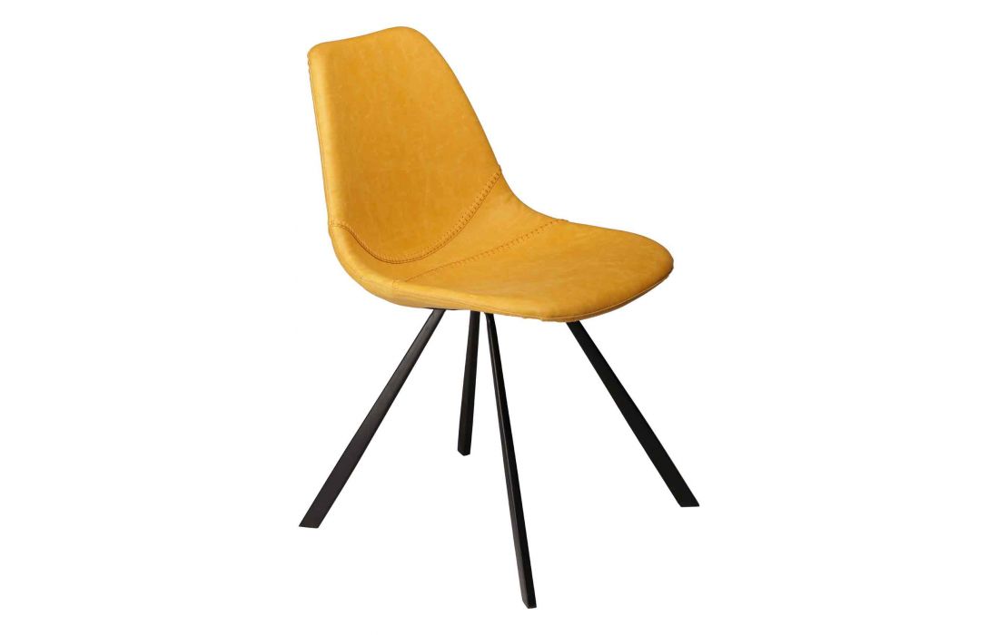 Cadeira com estofo em pele sintética preta, castanho claro, cinza vintage, amarelo ou verde vintage com pés em metal preto