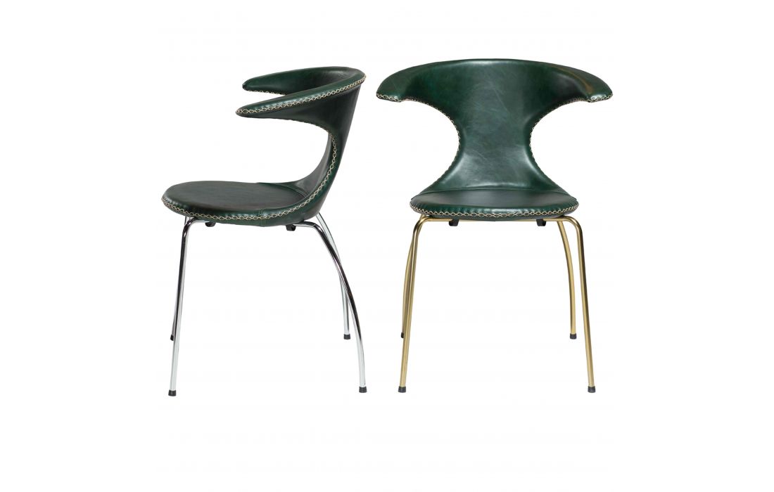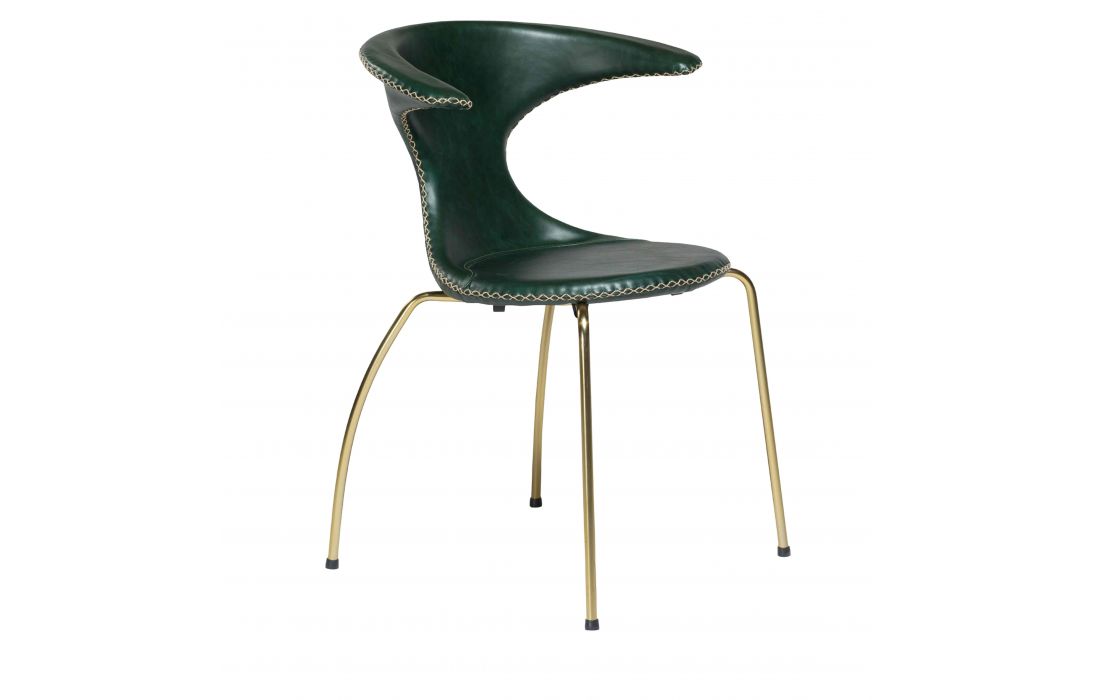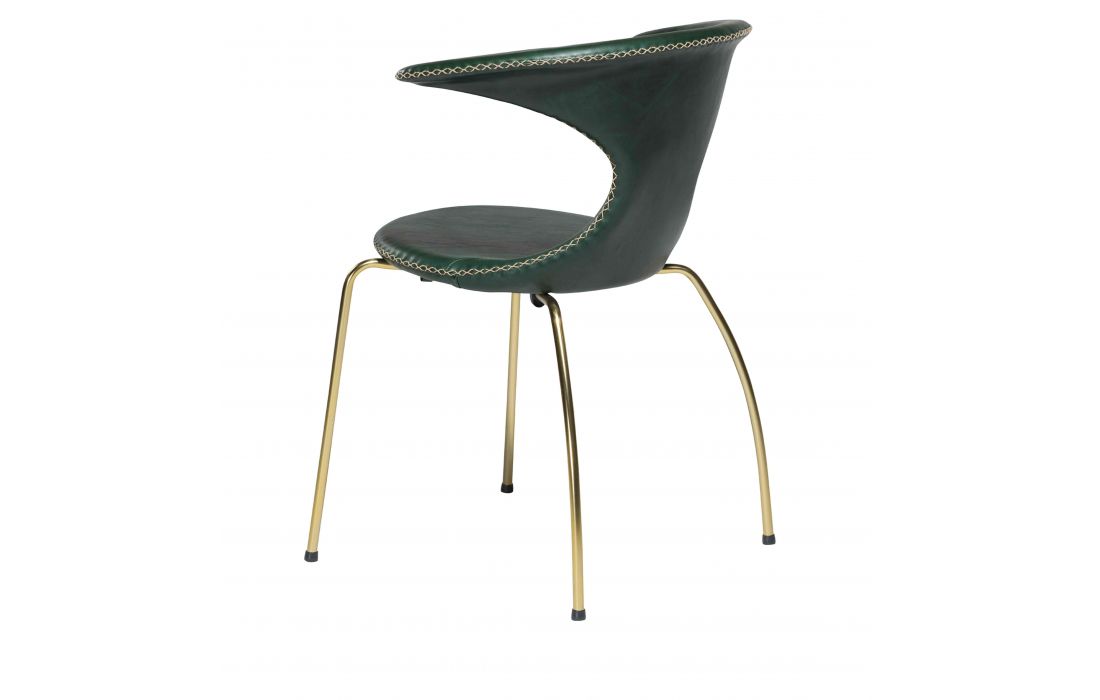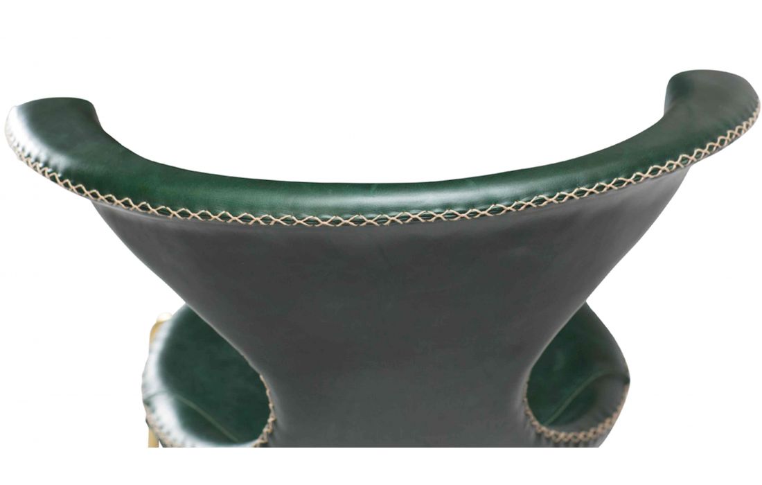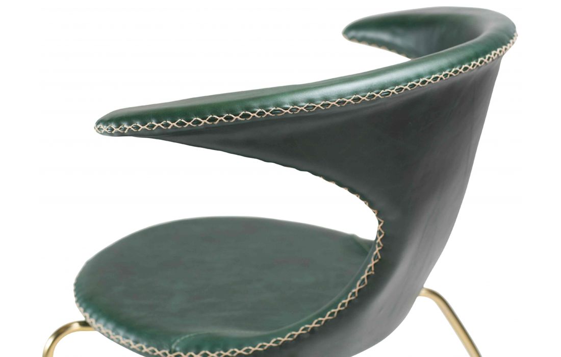 Cadeira com estofo em pele genuína verde e pés em metal dourado