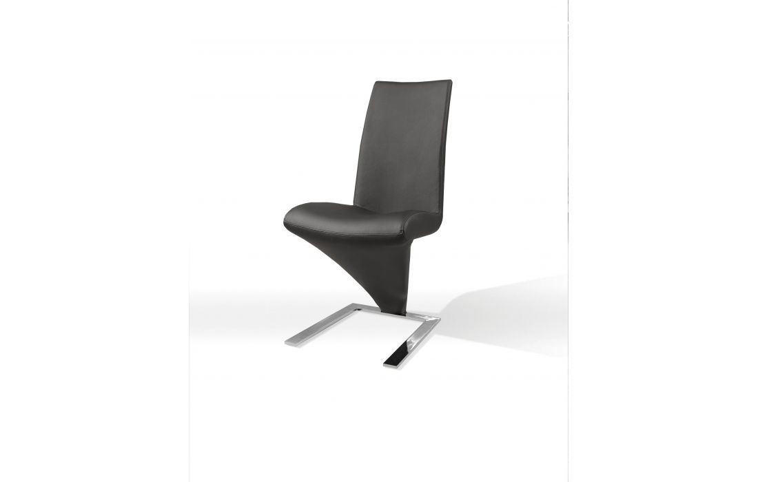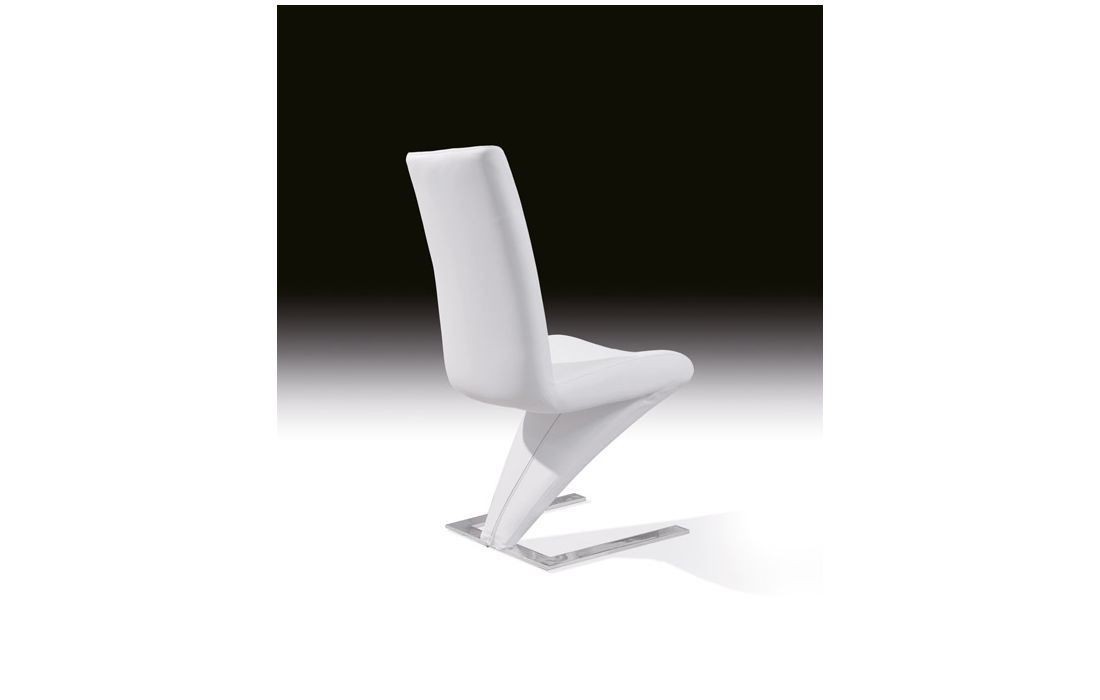 Cadeira com base em metal e estofo em pele sintética em preto ou branco.