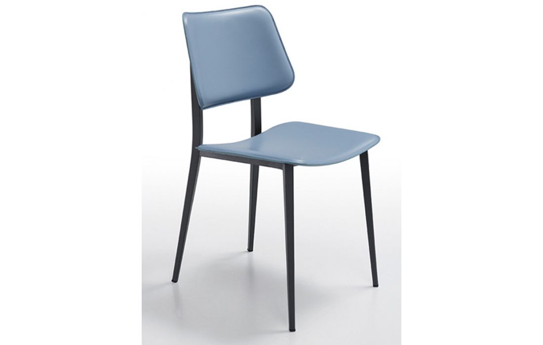 Cadeira revestida em couro ou couro regenerado com estrutura em aço branco ou aço preto