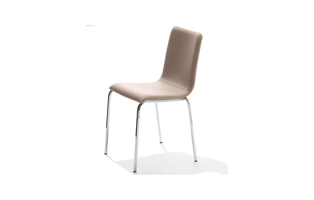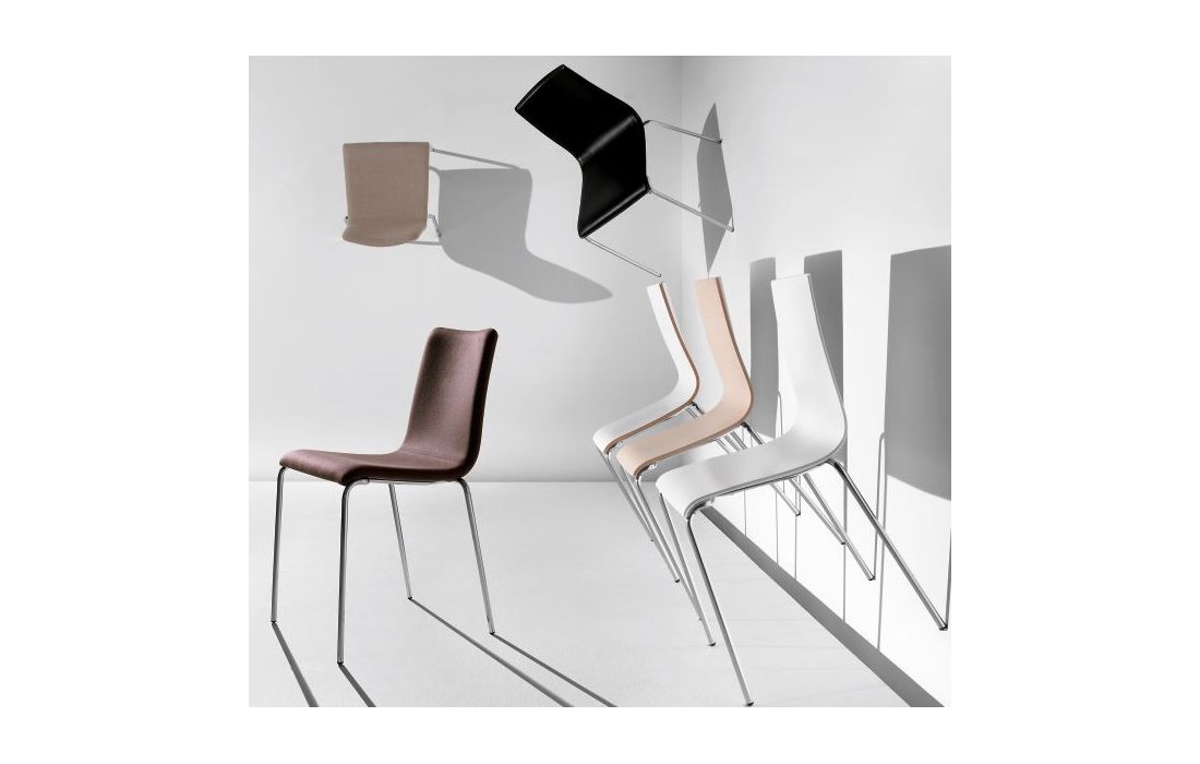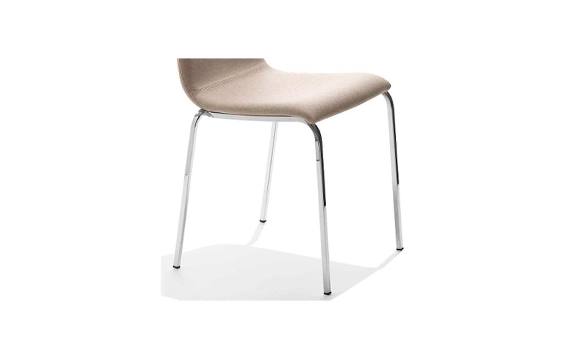Cadeira revestida em tecido, ecopele sintética ou pele genuína com pés em cromado ou aço branco
