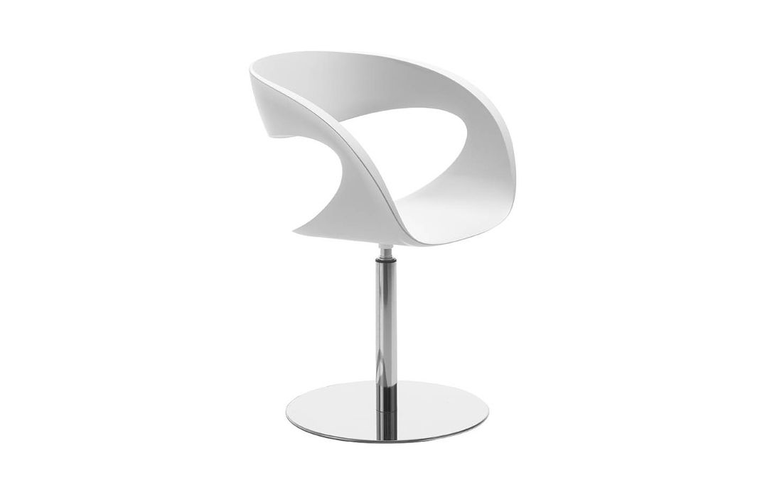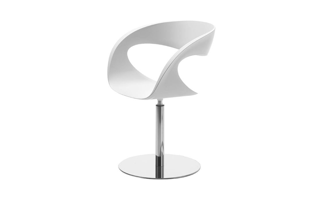 Cadeira com estrutura em baydur com pés cromados ou revestida em tecido, ecopel sintética ou pele genuína com pés cromados