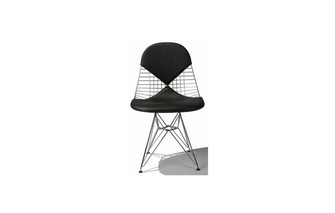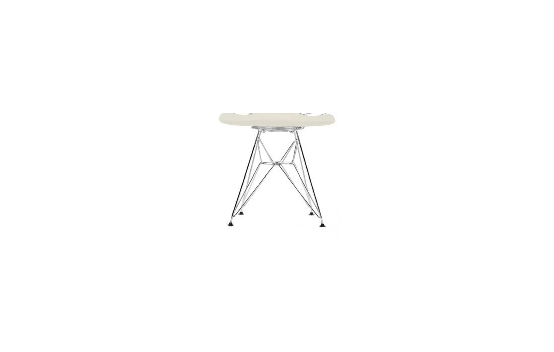 Cadeira com estrutura metal cromado e assento em pele sintética de cor branco ou preto.