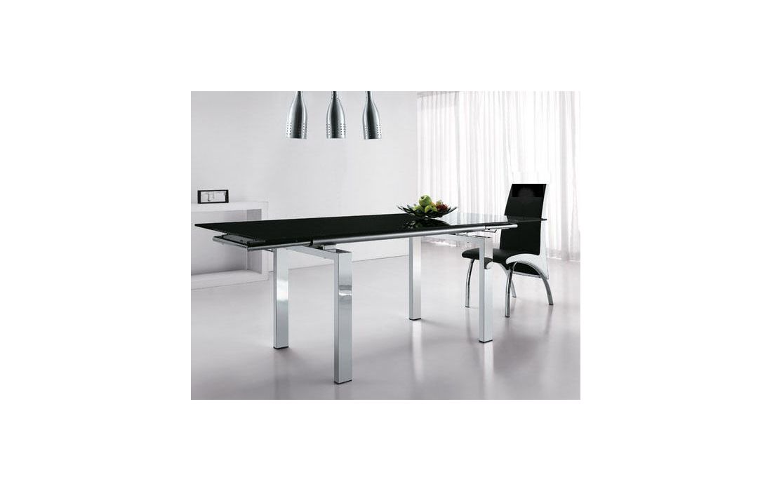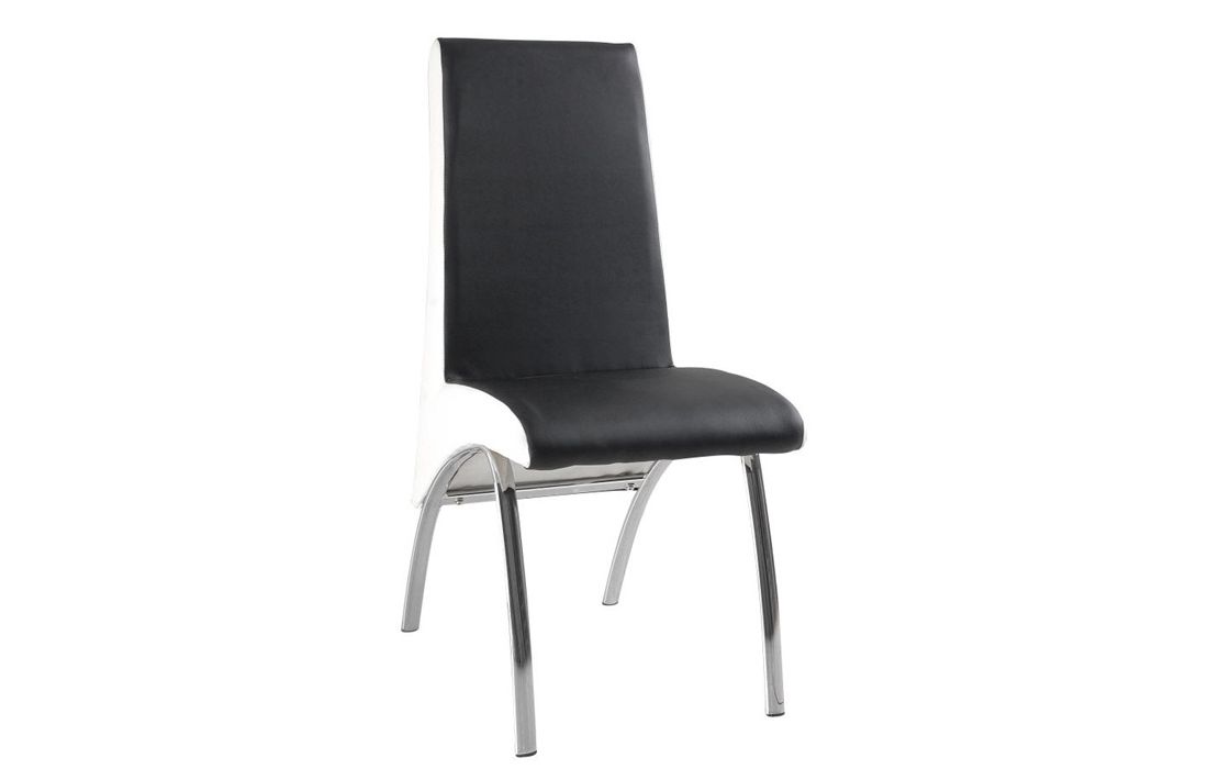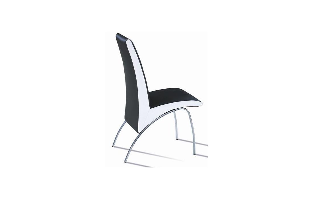 Cadeira em pele sintética de cor preto e branco com pés em metal cromado.