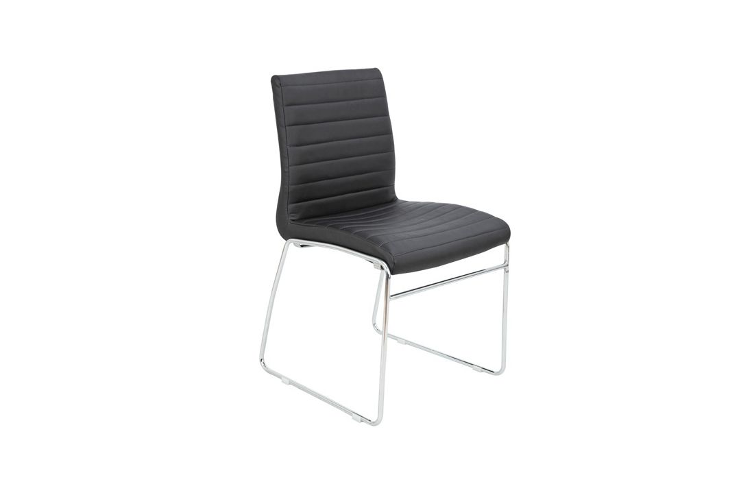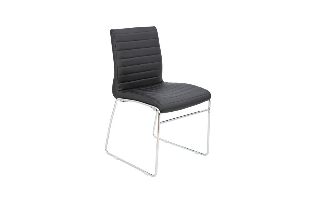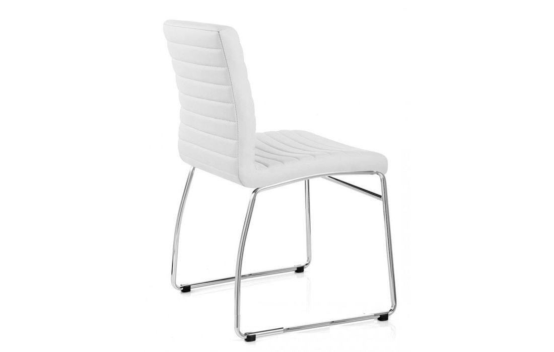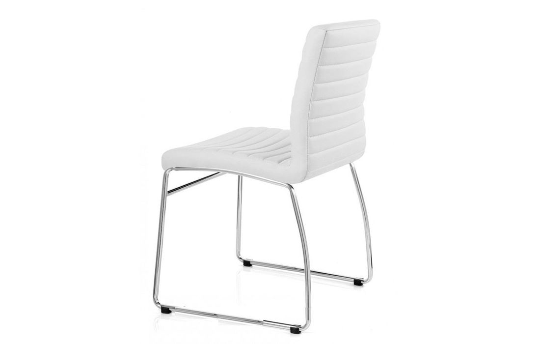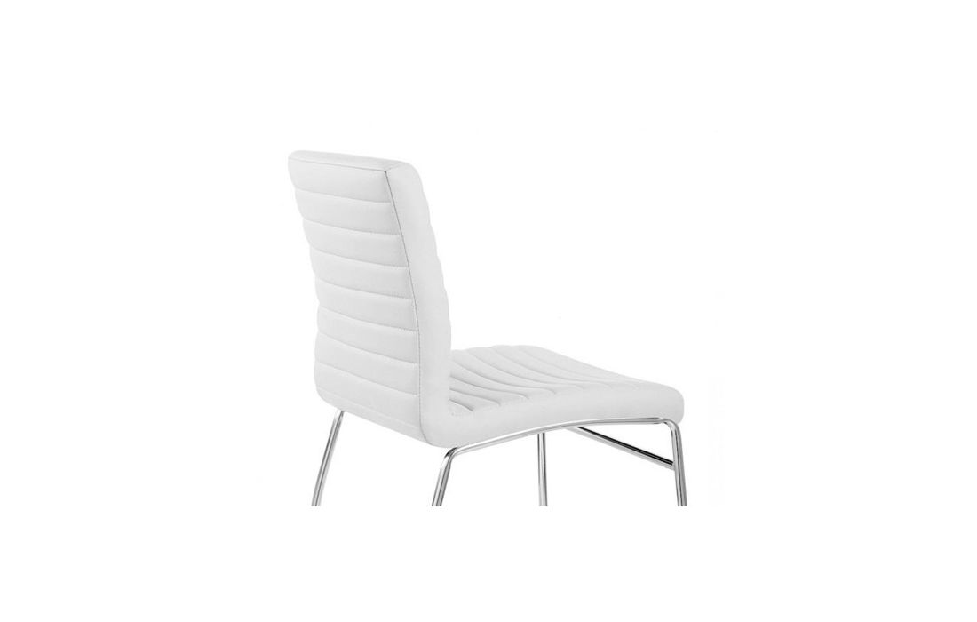 Cadeira com estrutura em metal cromado, assento e costa em pele sintética de cor branco ou preto