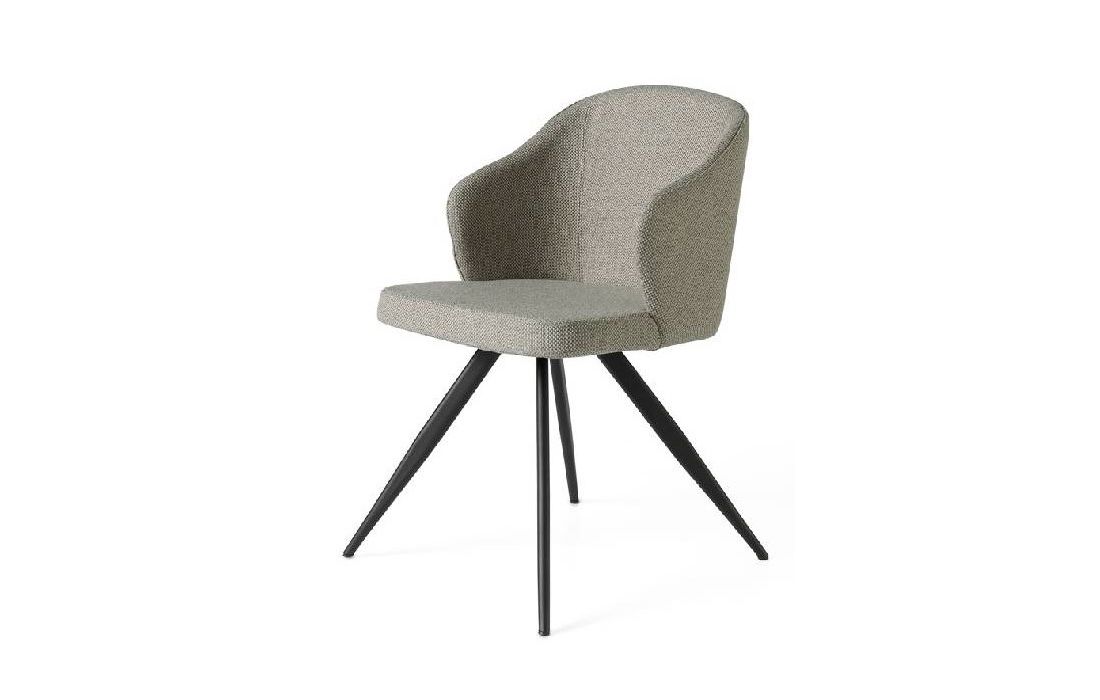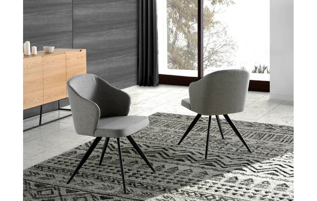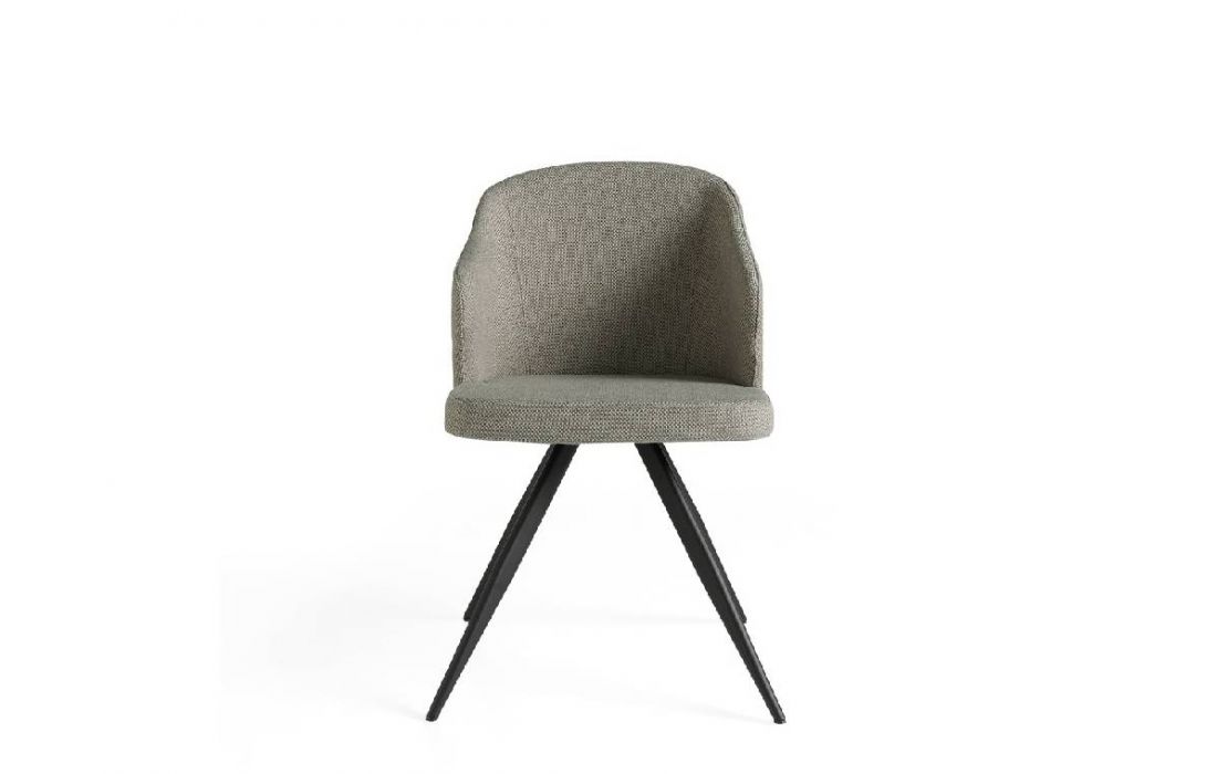 Cadeira de design moderno com assento e encosto estofados em tecido e as suas pernas em aço inoxidável pretoDestinatário :