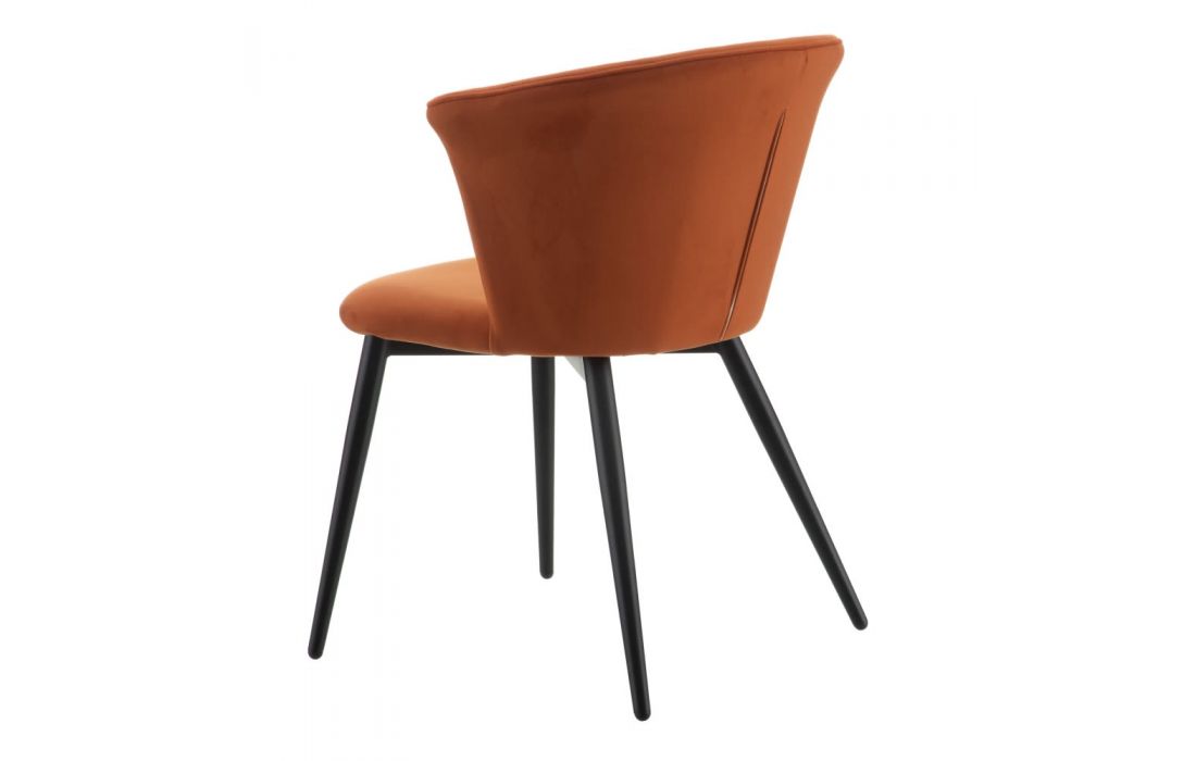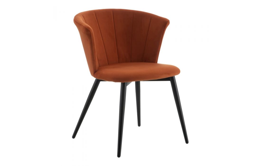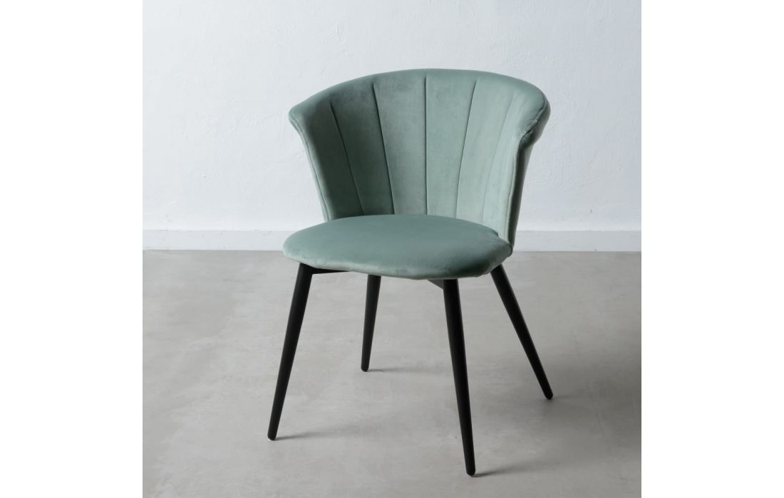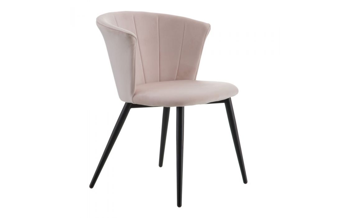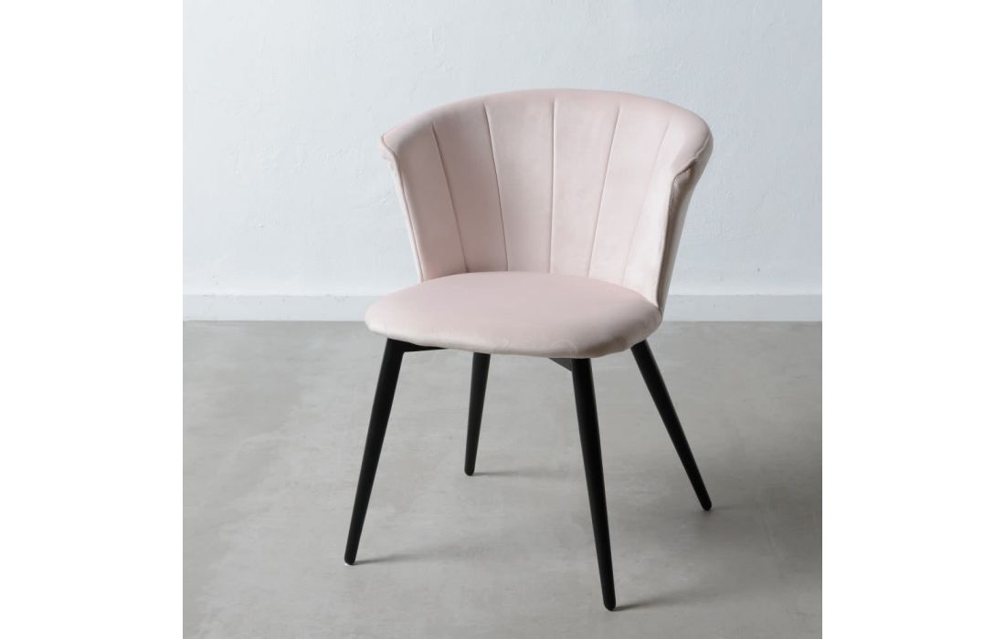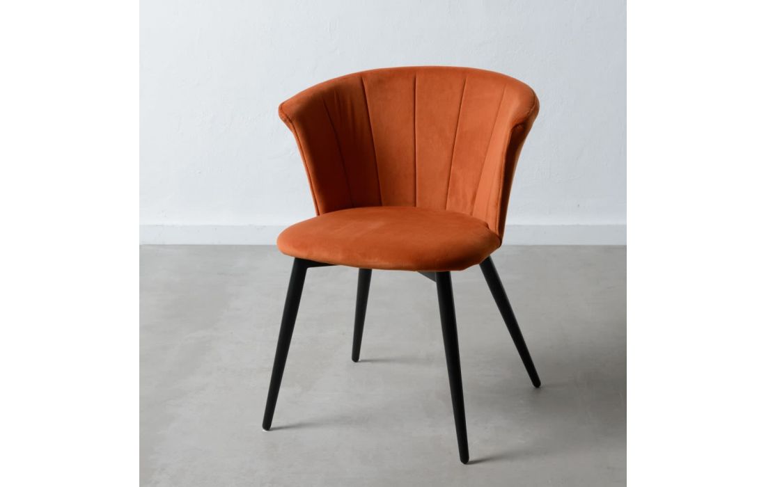 Cadeira com estofo em tecido com 5 cores disponiveis, rosa, laranja, cinzento, azul e verde menta com pés em aço de cor preto.Destinatário :