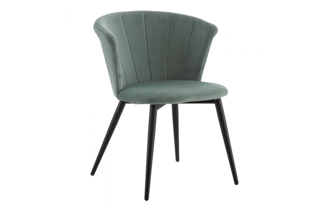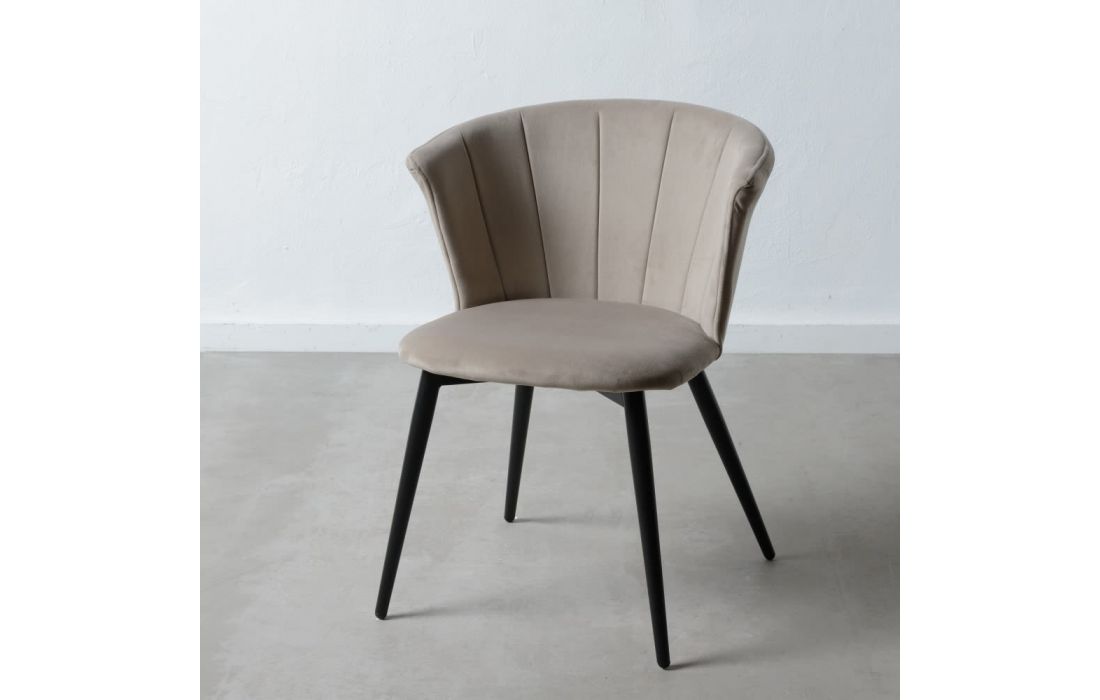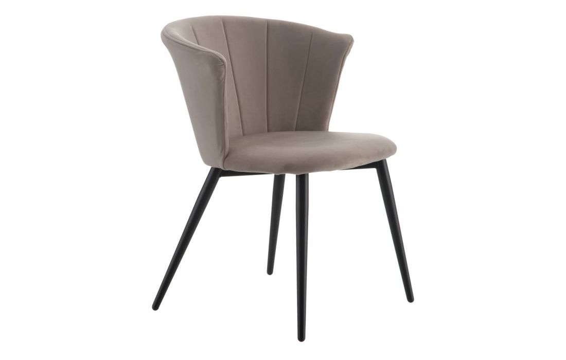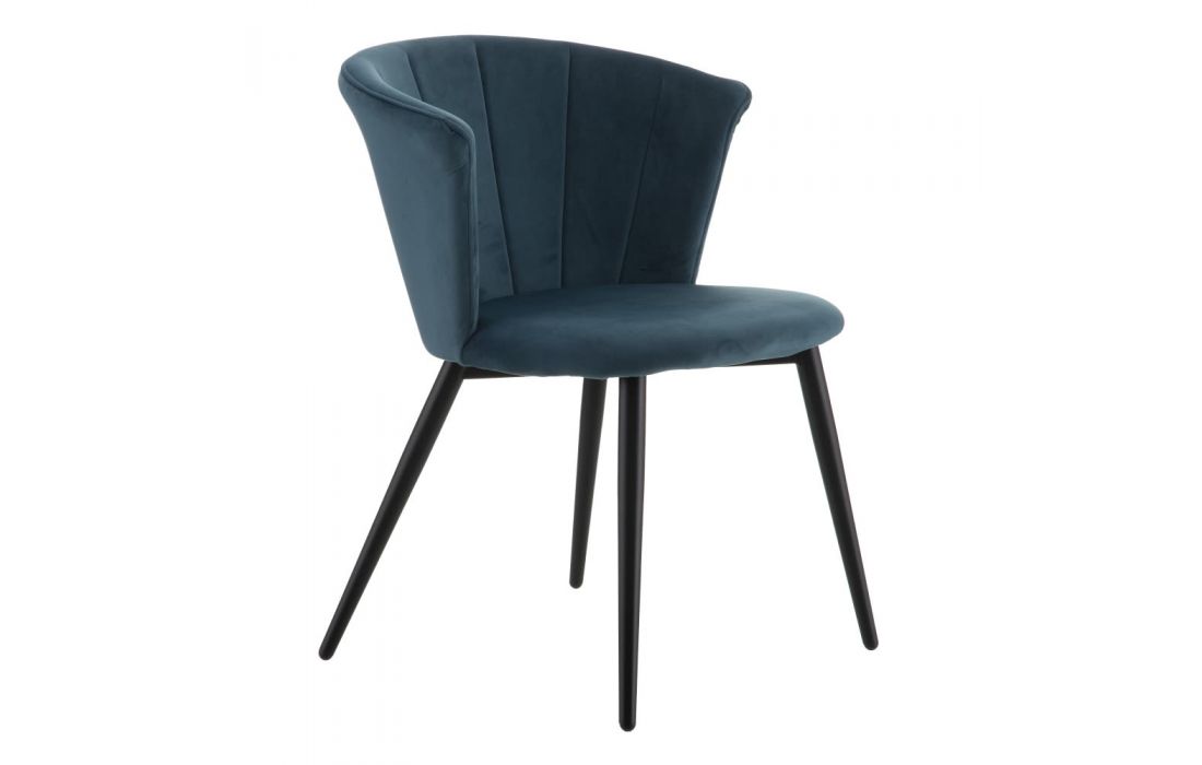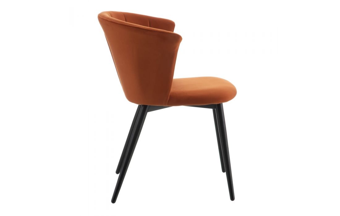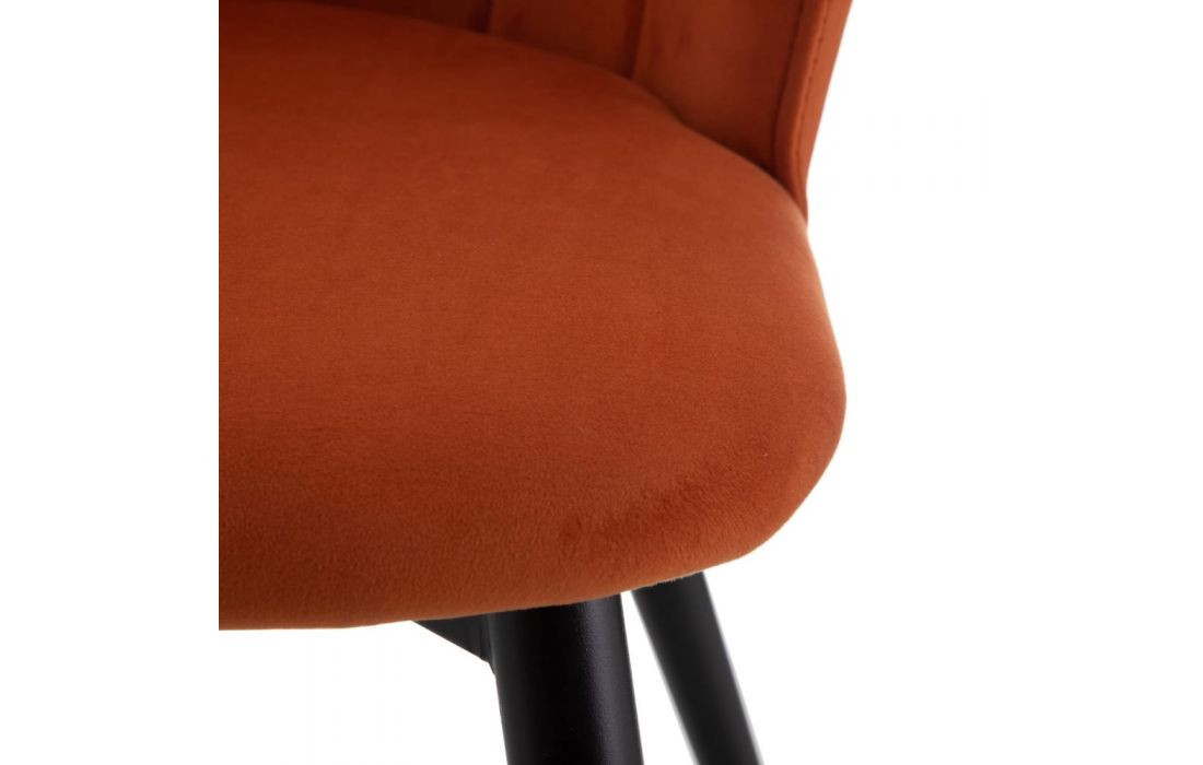 Cadeira com estofo em tecido com 5 cores disponiveis, rosa, laranja, cinzento, azul e verde menta com pés em aço de cor preto.Destinatário :