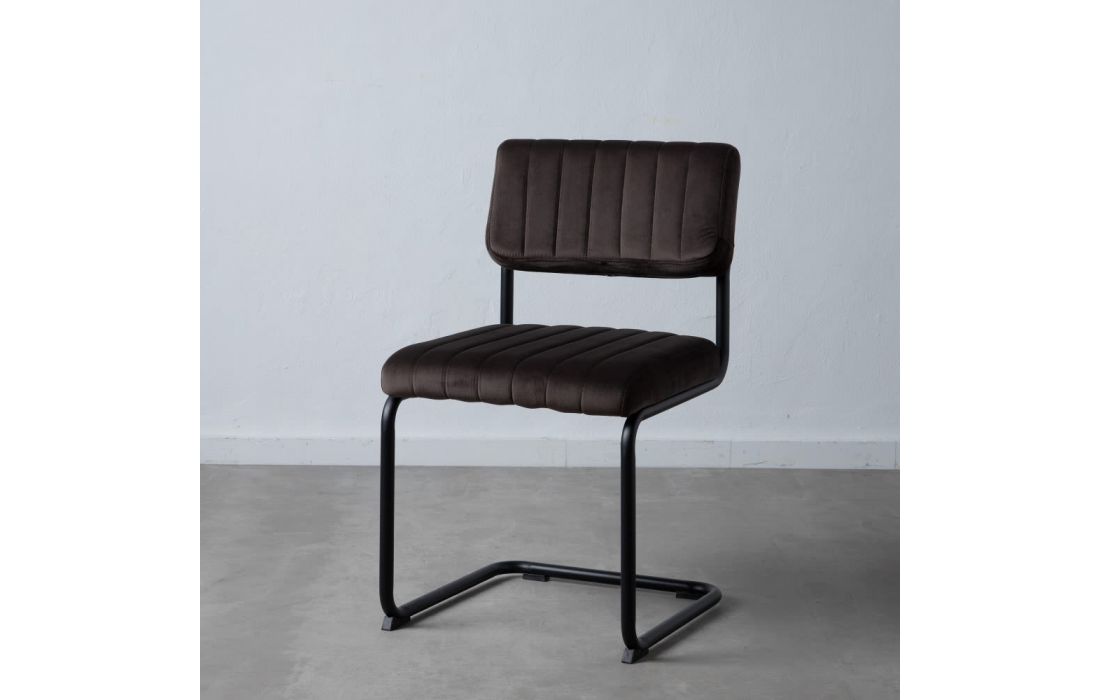 Cadeira com estofo em veludo com 2 cores disponiveis, bege e castanho com pés em aço de cor pretoDestinatário :