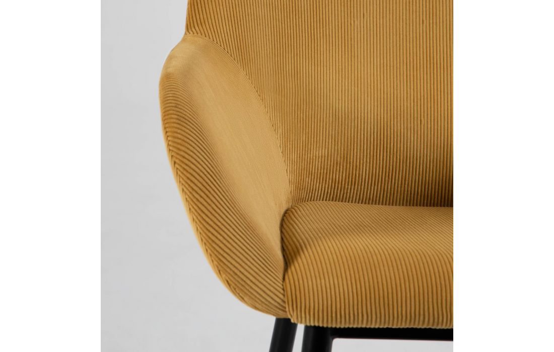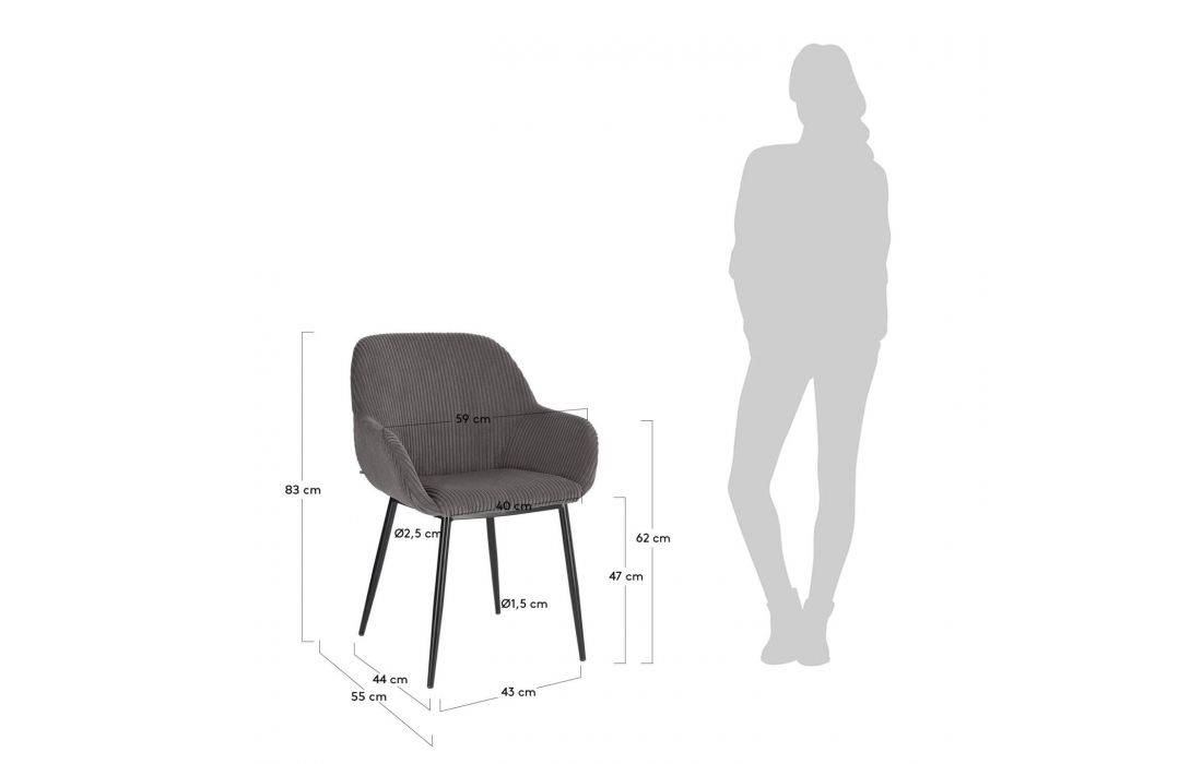 Cadeira estofada em tecido nas várias cores com pés em metal na cor preta. Design contemporâneo ideal para ter em casa e no trabalho.Destinatário :