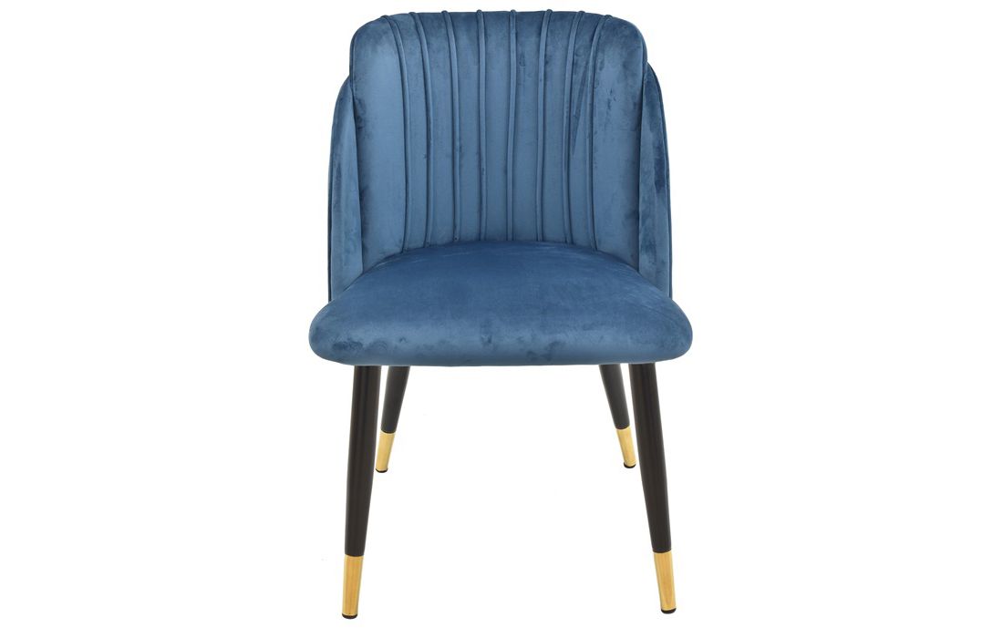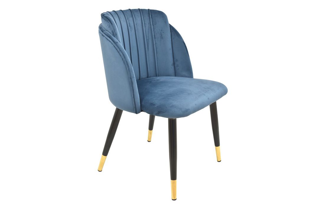 Cadeira com pés de metal cor preto e dourado e estofo em tecido de veludo, disponivel nas cores azul, rosa e verde Prazo de Entrega 10 a 20 dias Dimensões em cm L 61 P 52 A 80